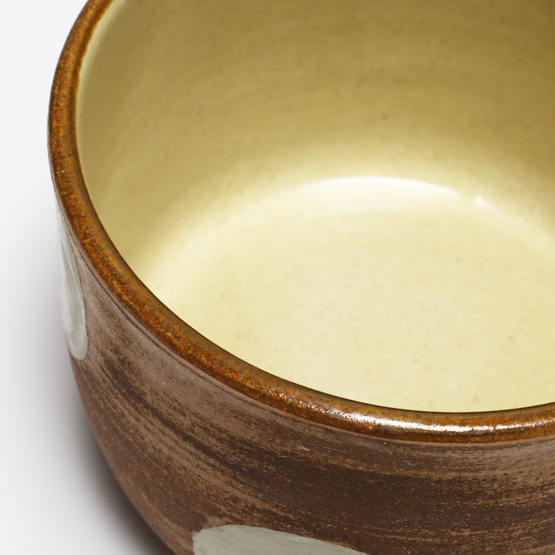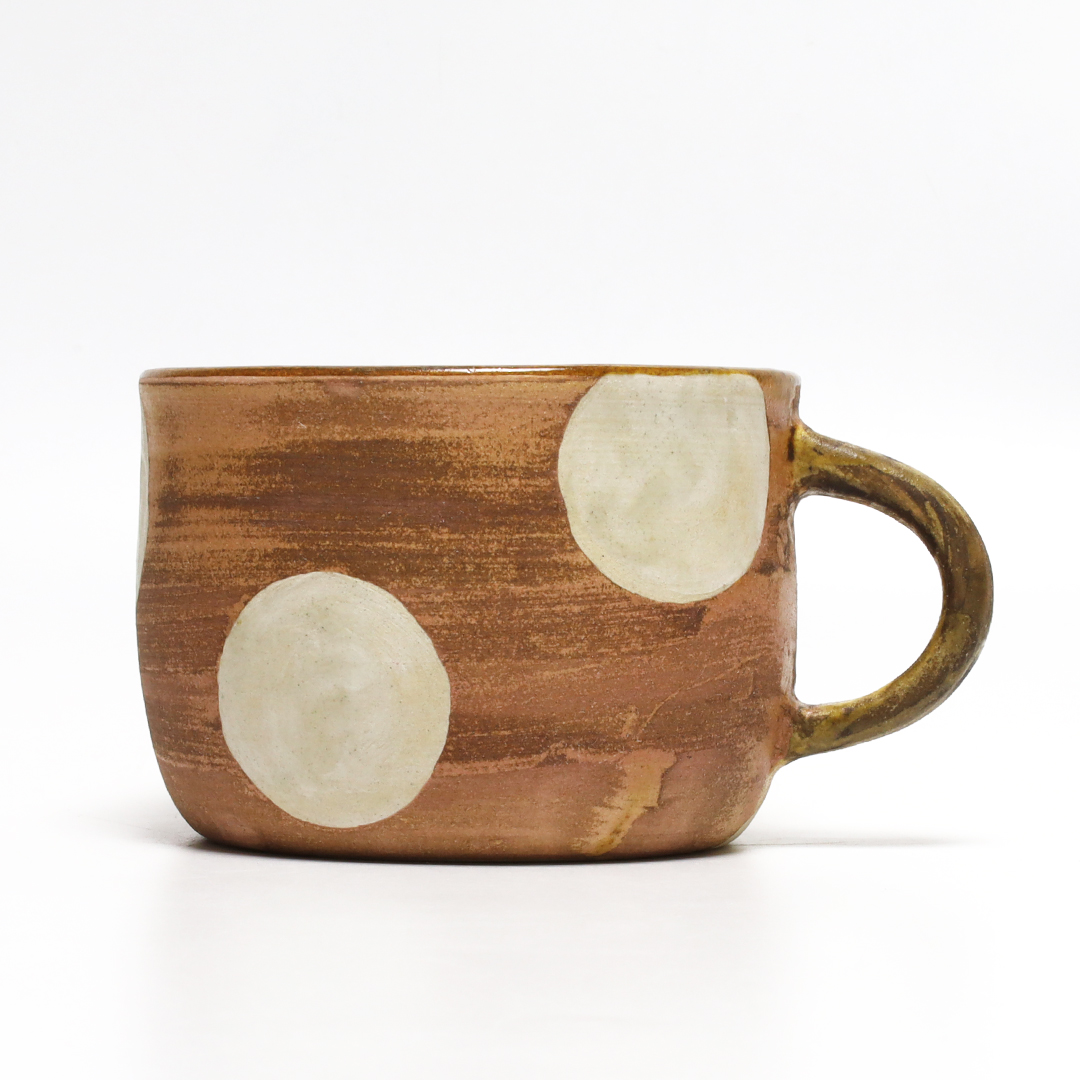 土っぽさを残した質感にカラフルな色合いの絵付けをしています。