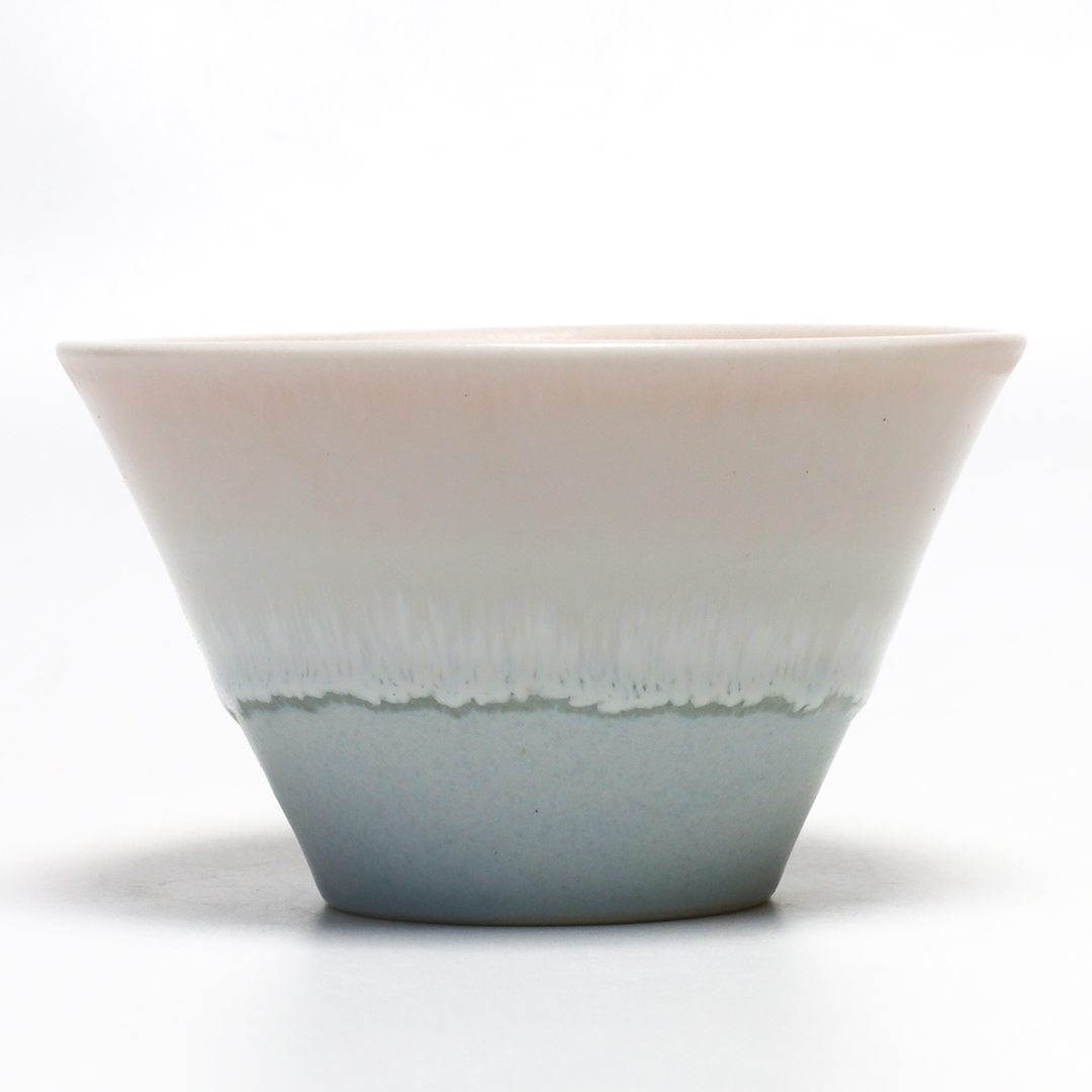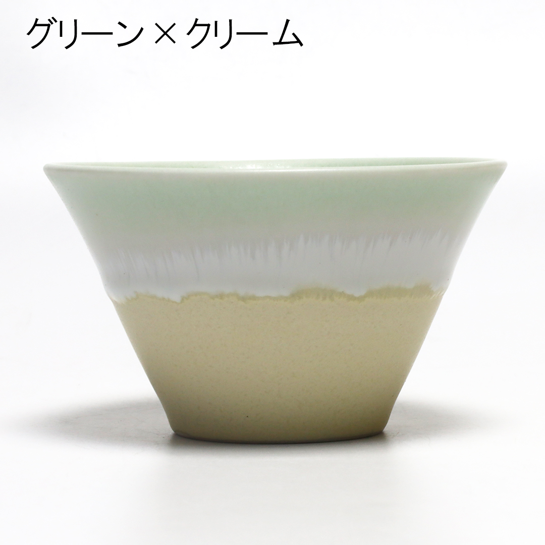 3種類の釉薬の窯変(陶磁器を焼く際、炎の性質や釉(うわぐすり)の含有物質などが原因で予期しない変化を求める事、またはやり方)をお楽しみ頂きたい器。