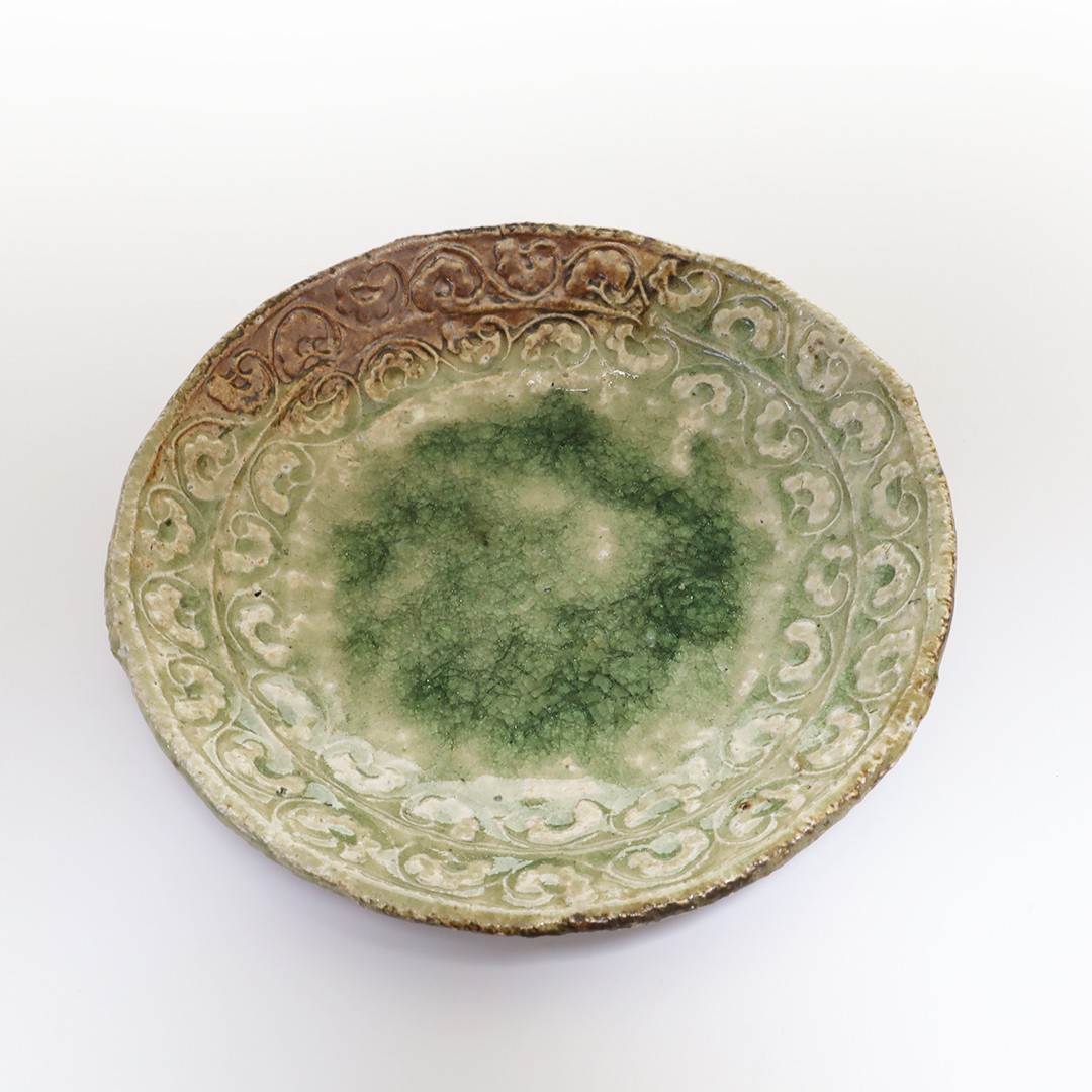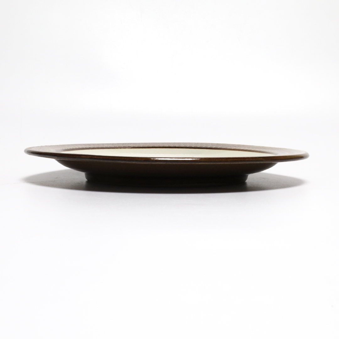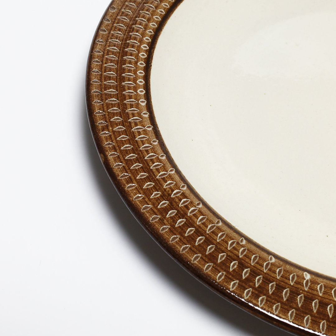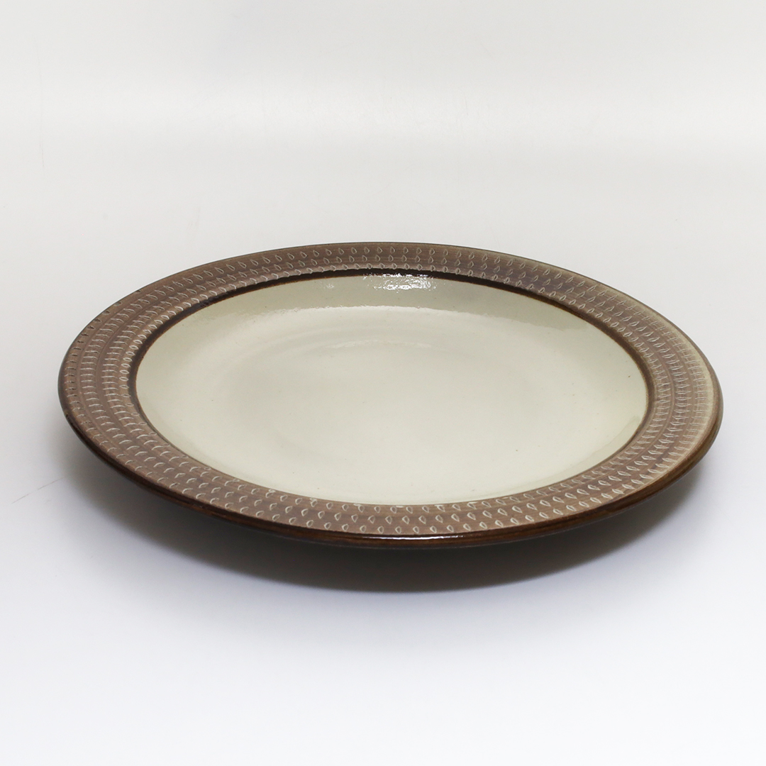 柳瀬本窯元 リム付き平皿 中・飛鉋・茶呉須