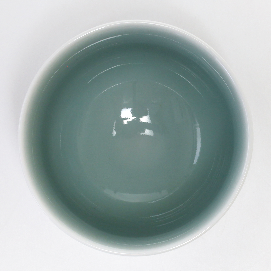 高級食器として知られる鍋島焼を、現代の暮らしに引き寄せる新たなブランド「KOSEN」の鍋島青磁の煎茶碗です。 鍋島焼は江戸時代に将軍や大名だけが使うことができる「大名の日用品」としてつくられた陶磁器で、高い技術を駆使した精緻さと華やかさが特徴です。鍋島青磁は色鍋島、藍鍋島と並ぶ鍋島焼の代表的な工法のひとつ。青緑色の青磁釉が美しい、気品のある佇まいが持ち味です。
