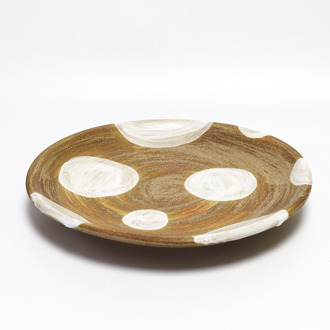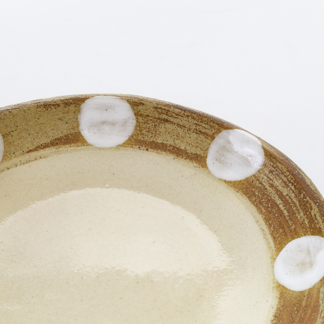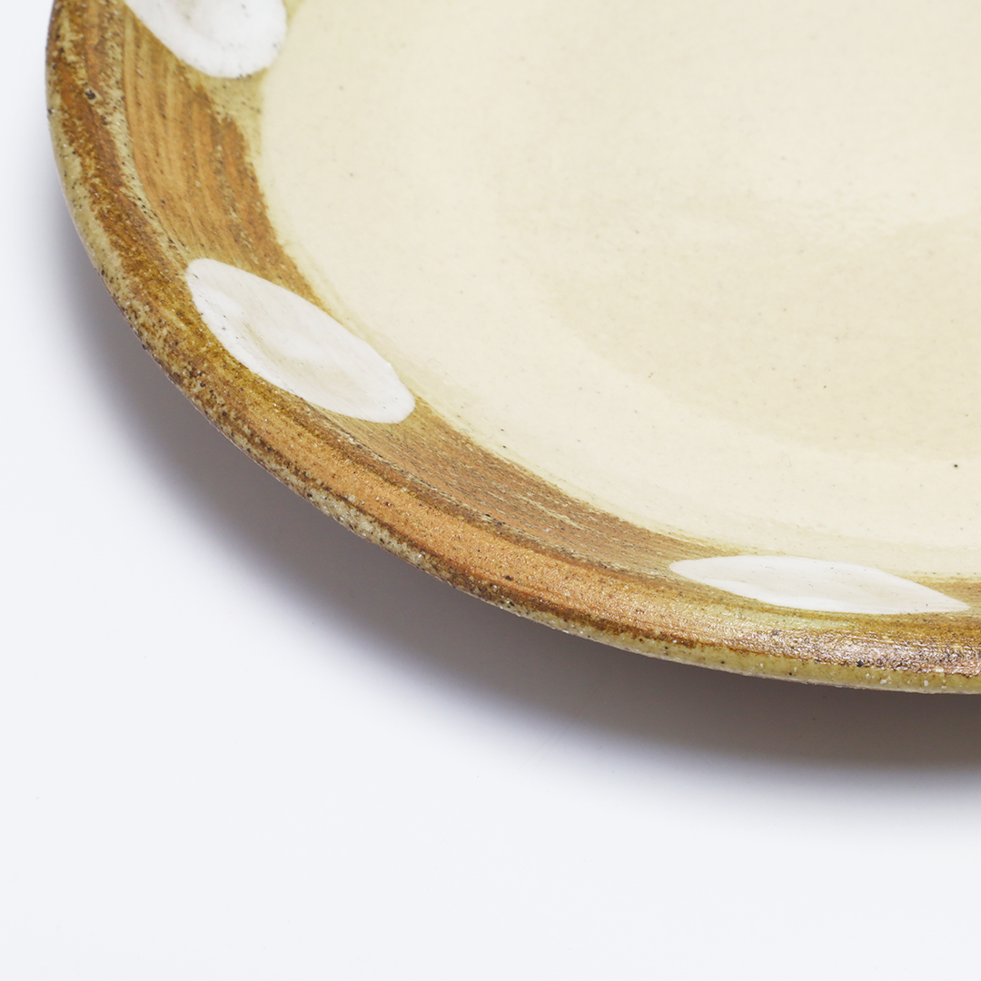 土工房 陶糸 7寸皿・マット茶・水玉白