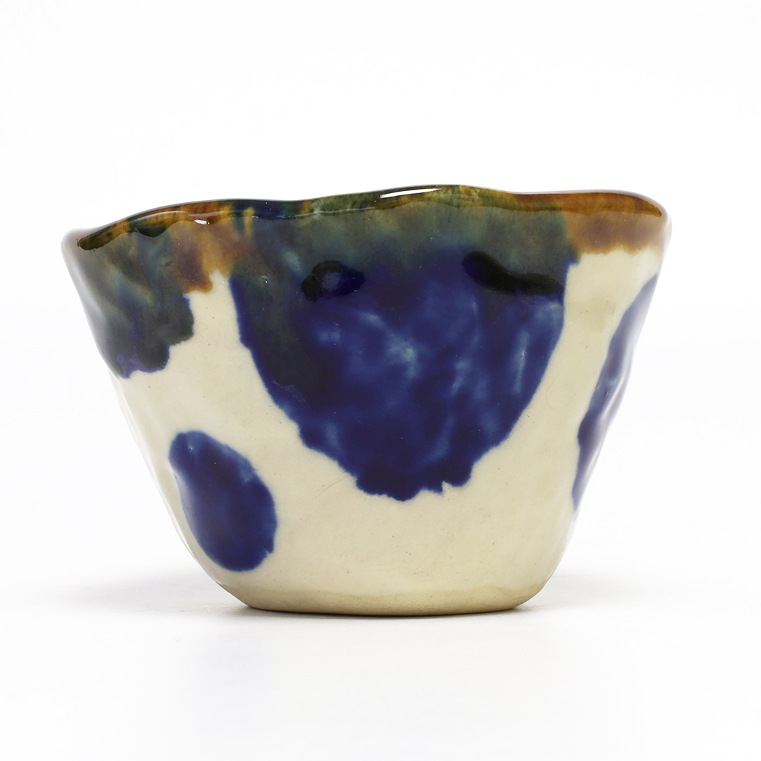 やちむんらしい色合いにポップな絵柄を組み合わせて、オリジナリティあるやちむんになっています。