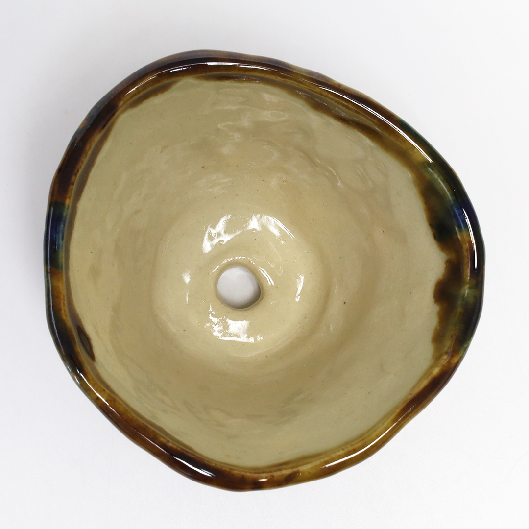 たたら(板状にした粘土を手や型で成形する手法)で作られていて、温かみのある柔らかいデザインになっています。