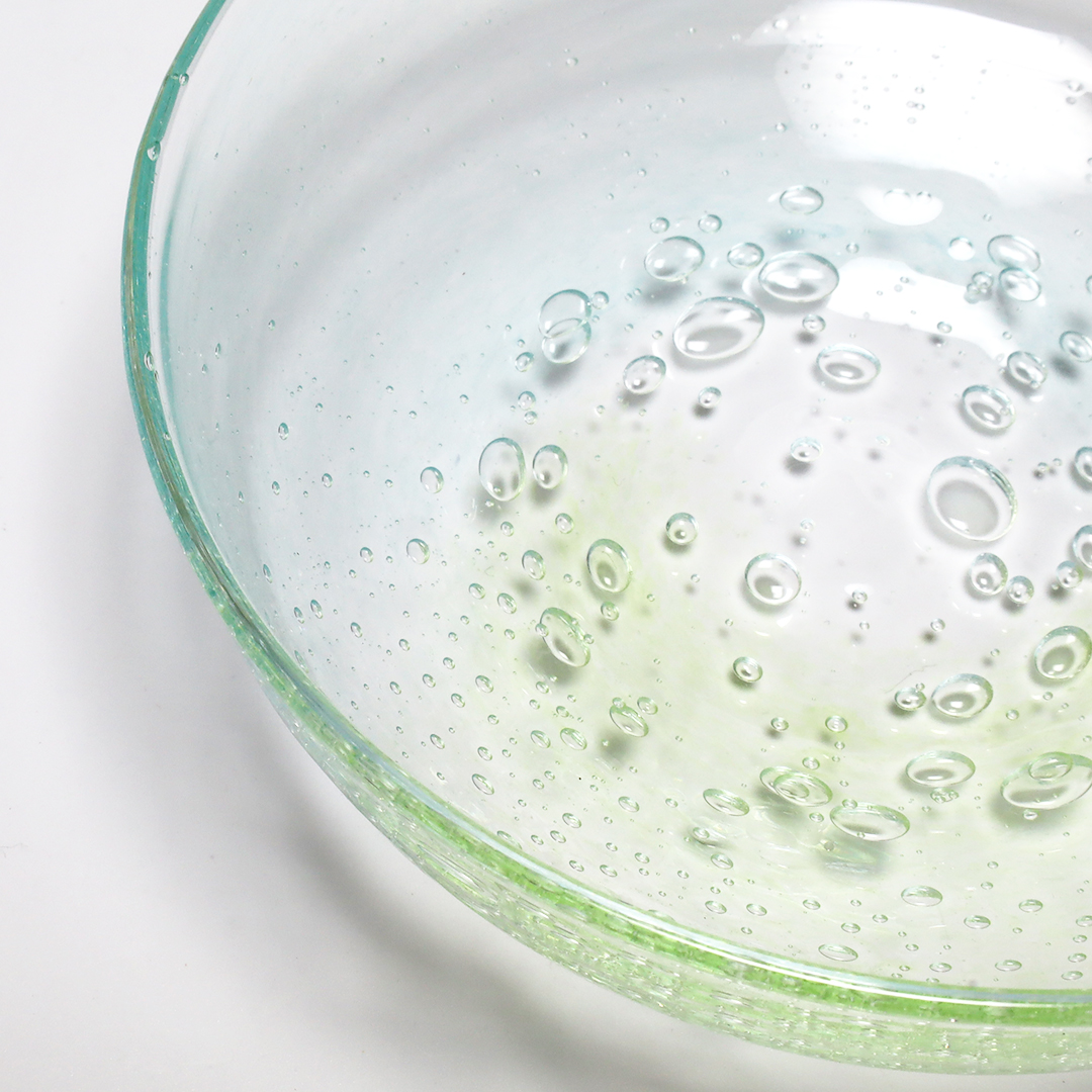 「触れることのできる記憶」をテーマに一瞬だけど一生心に残って輝いている記憶をガラスに重ね合わせ、日常の中で手に取って使った時や飾って眺めた時に、心の奥にあった大切な記憶を思い出し、心がじんわりと温まりほぐれていく「融点」になるようなものになればという思いを込めて制作しています。