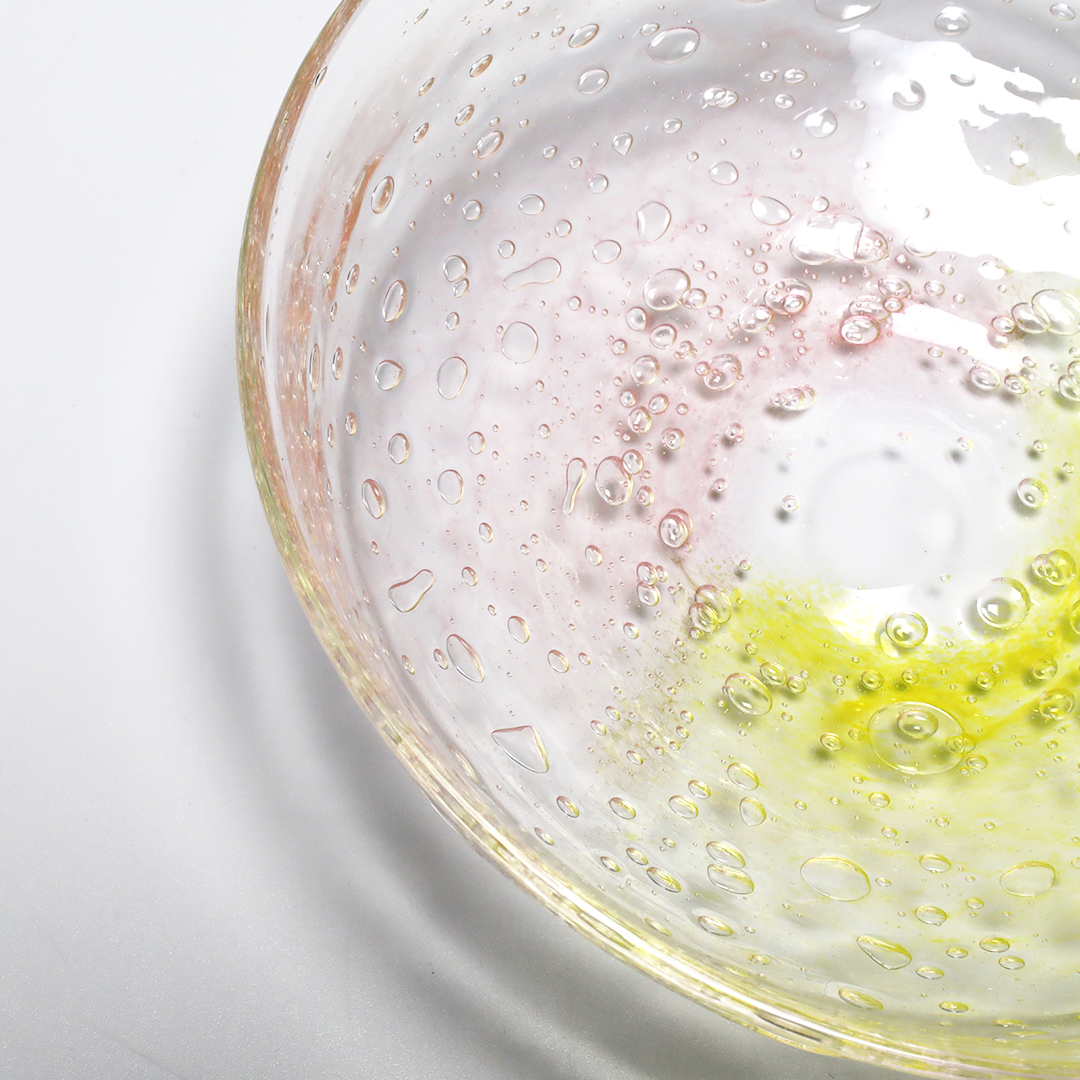 「触れることのできる記憶」をテーマに一瞬だけど一生心に残って輝いている記憶をガラスに重ね合わせ、日常の中で手に取って使った時や飾って眺めた時に、心の奥にあった大切な記憶を思い出し、心がじんわりと温まりほぐれていく「融点」になるようなものになればという思いを込めて制作しています。