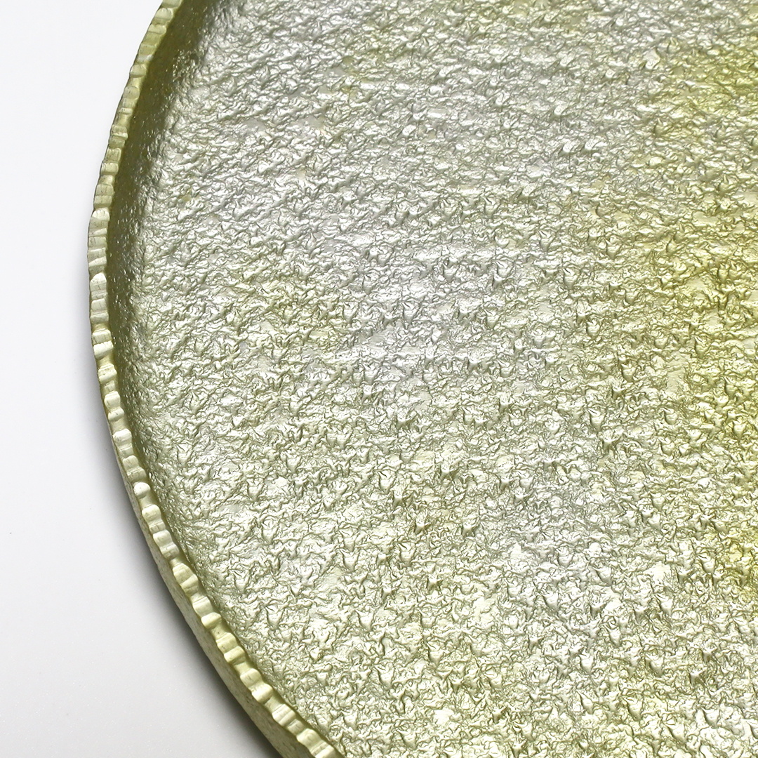 アルミニウムに草木染を施した個性ある器。