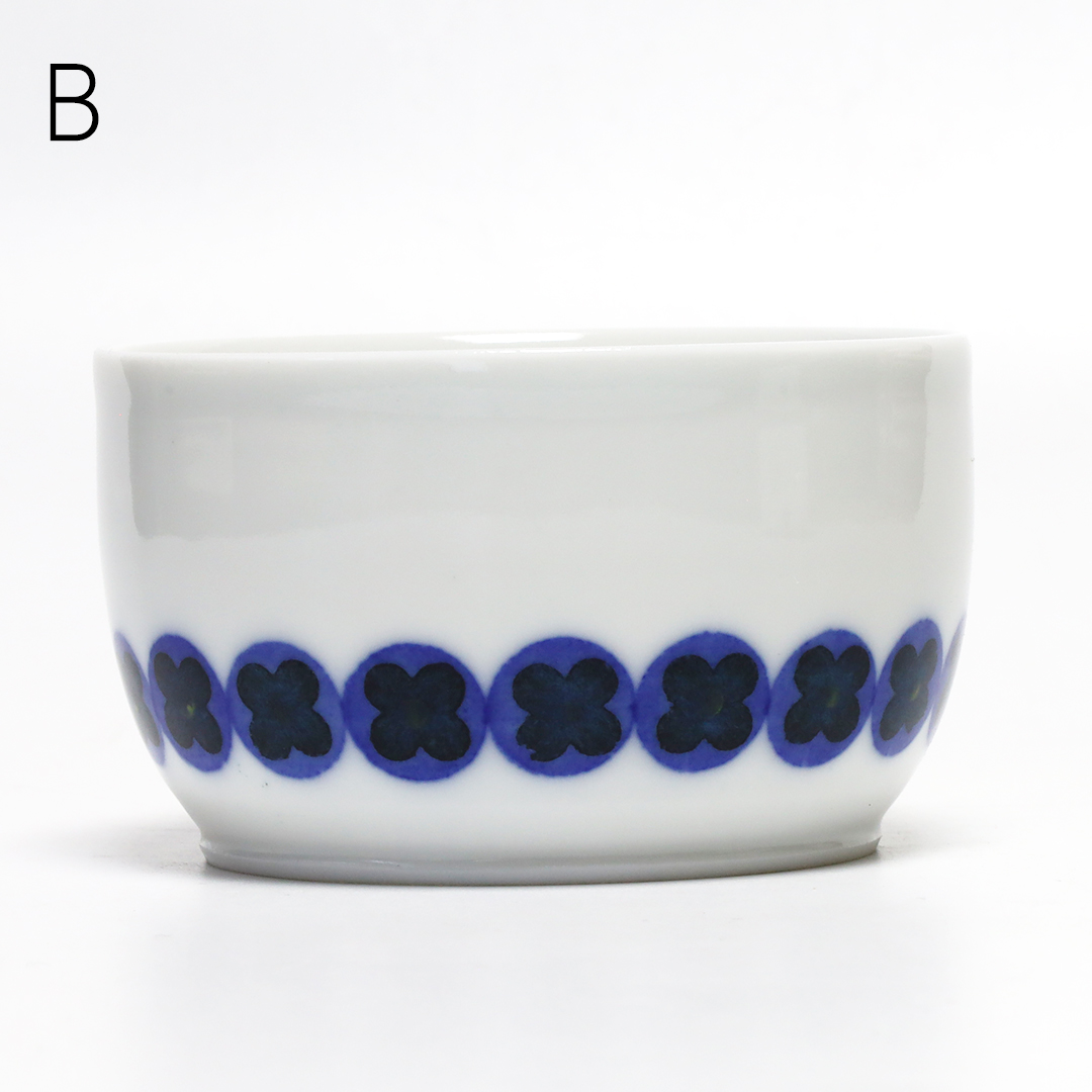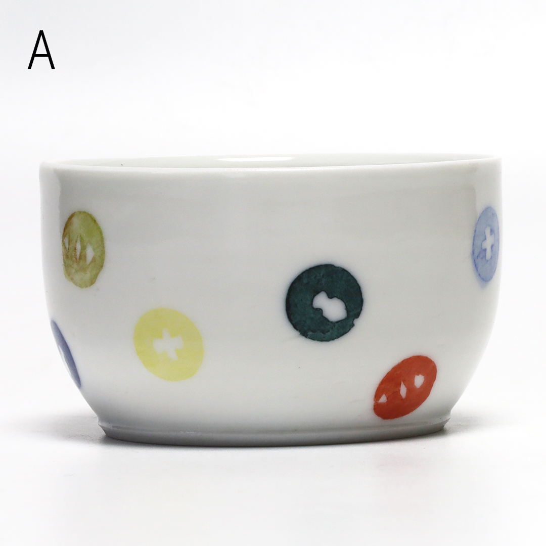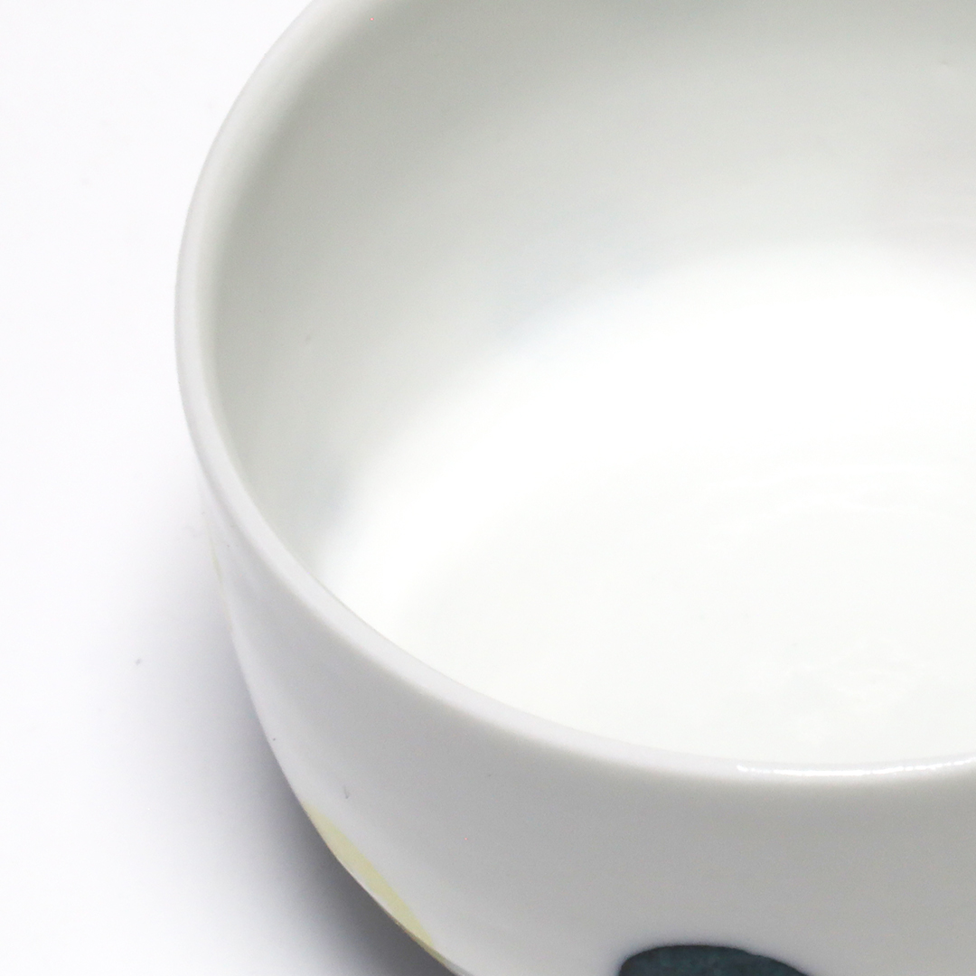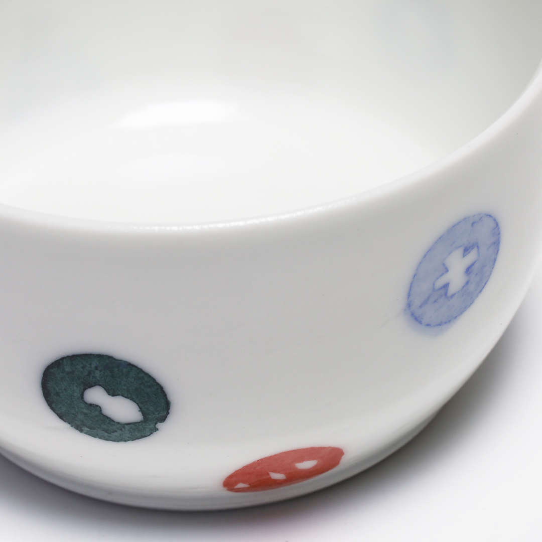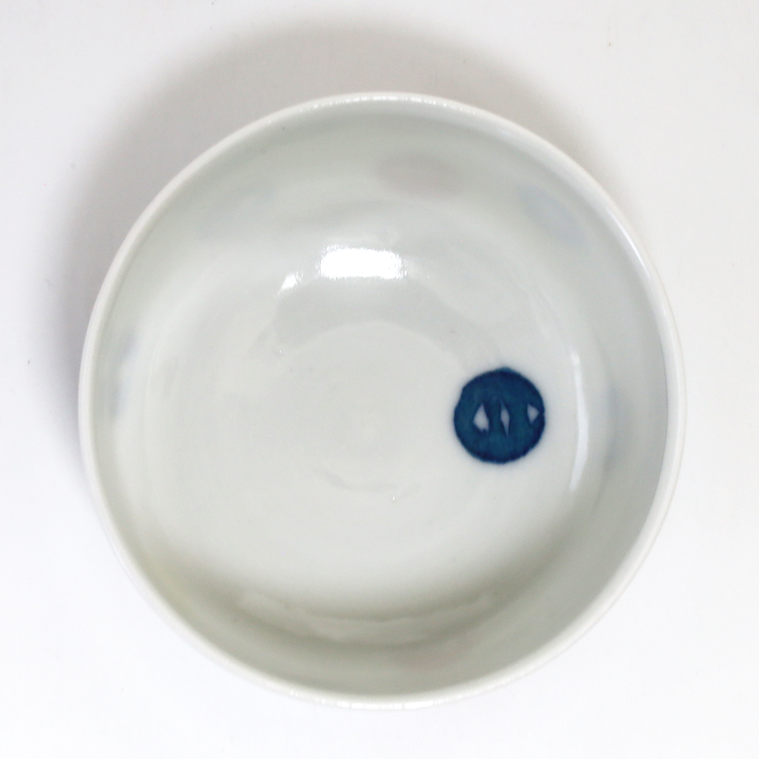 「和紙染め」という染付技法を中心に製作しています。絵付けをするときに和紙を通して色付けすることで紙の質感や形を器に写すことができます。切り絵と貼り絵を合わせたような風合いになるのが特徴です。また、使い勝手を考えられた形状をしているので使いやすい器です。