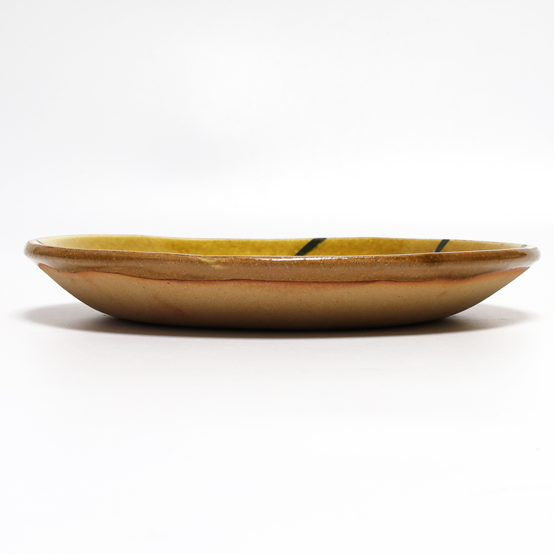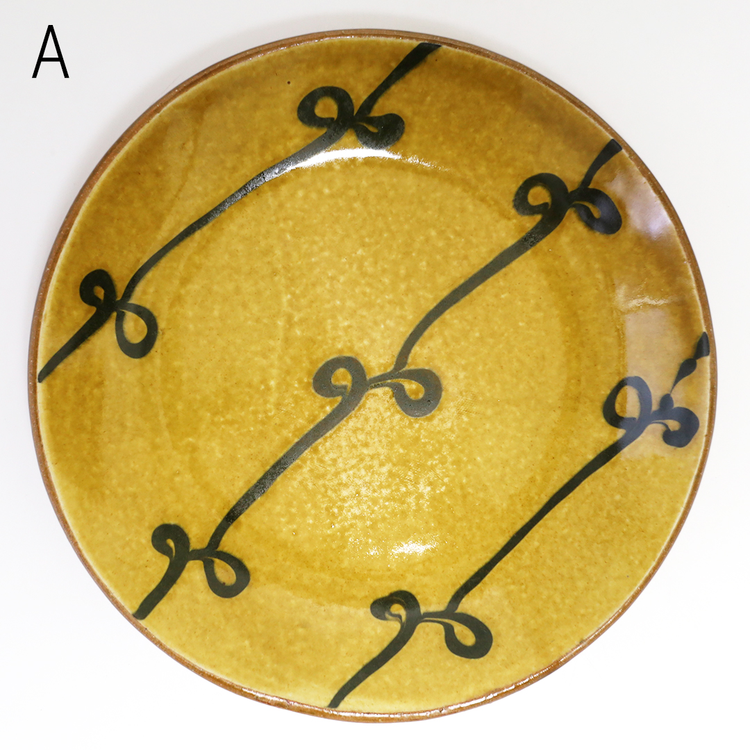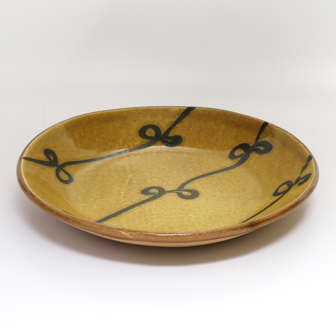 厚みのあるポッテリとした形状に柔らかみがあり、温かみのあるスリップウェアが特徴です。