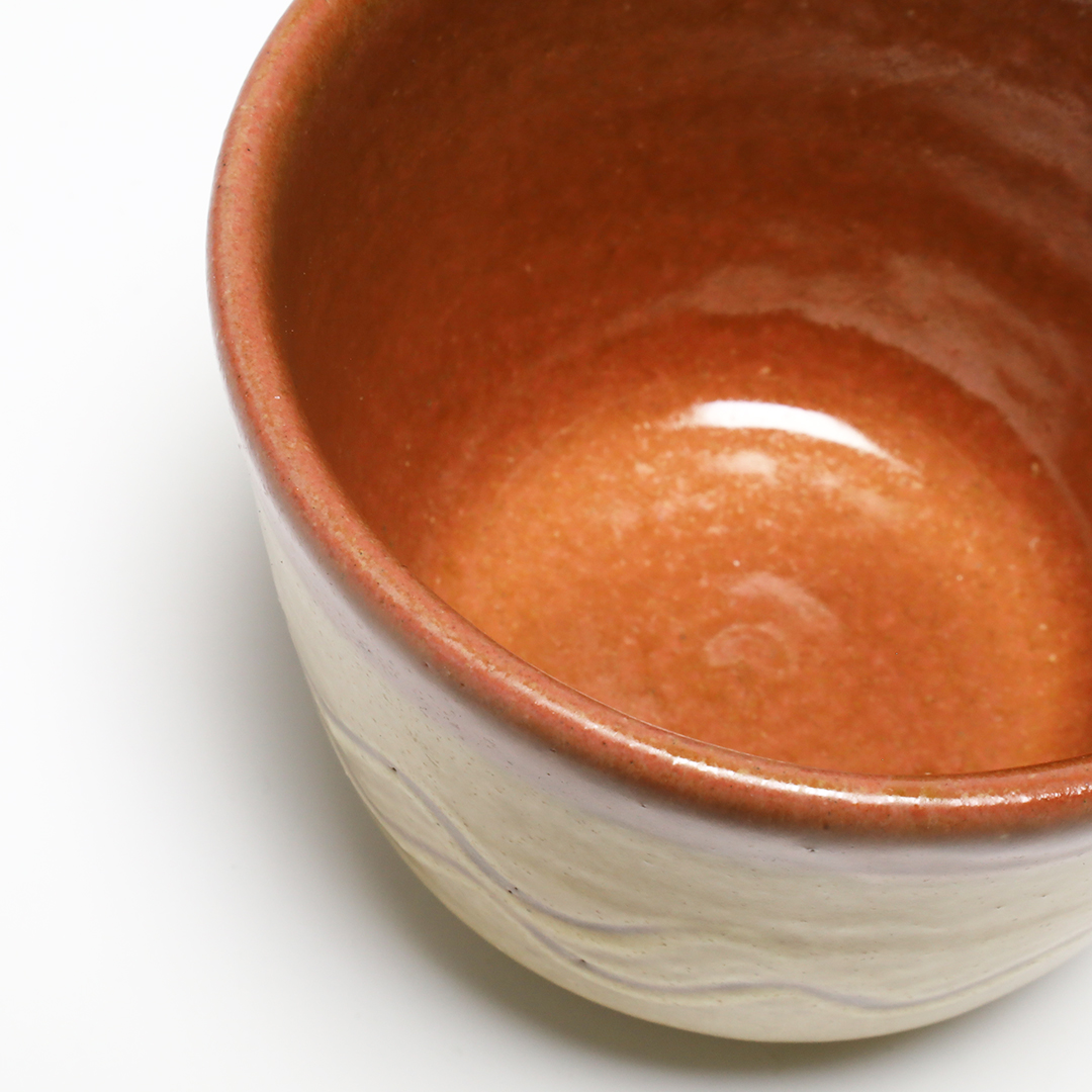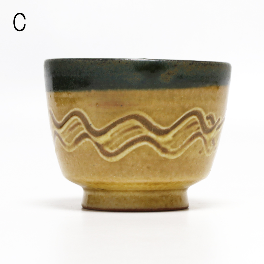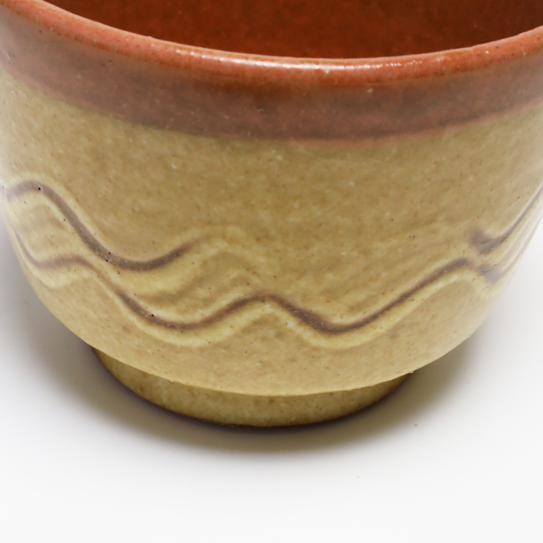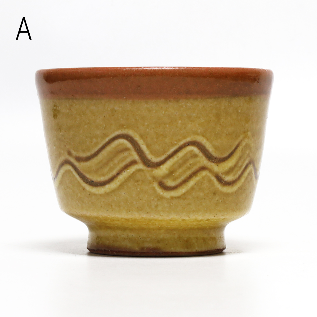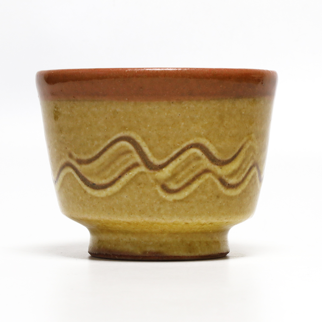 厚みのあるポッテリとした形状に柔らかみがあり、温かみのあるスリップウェアが特徴です。