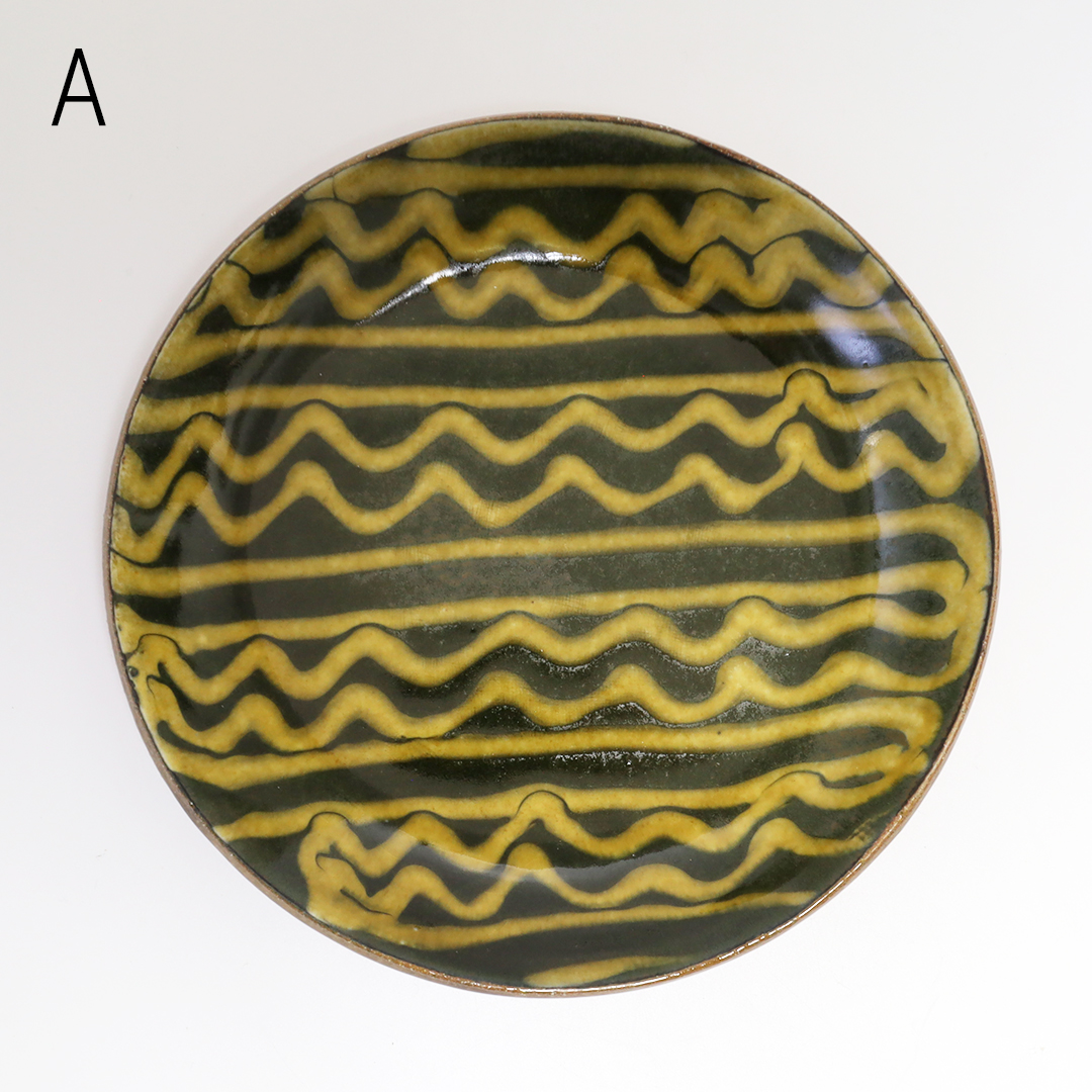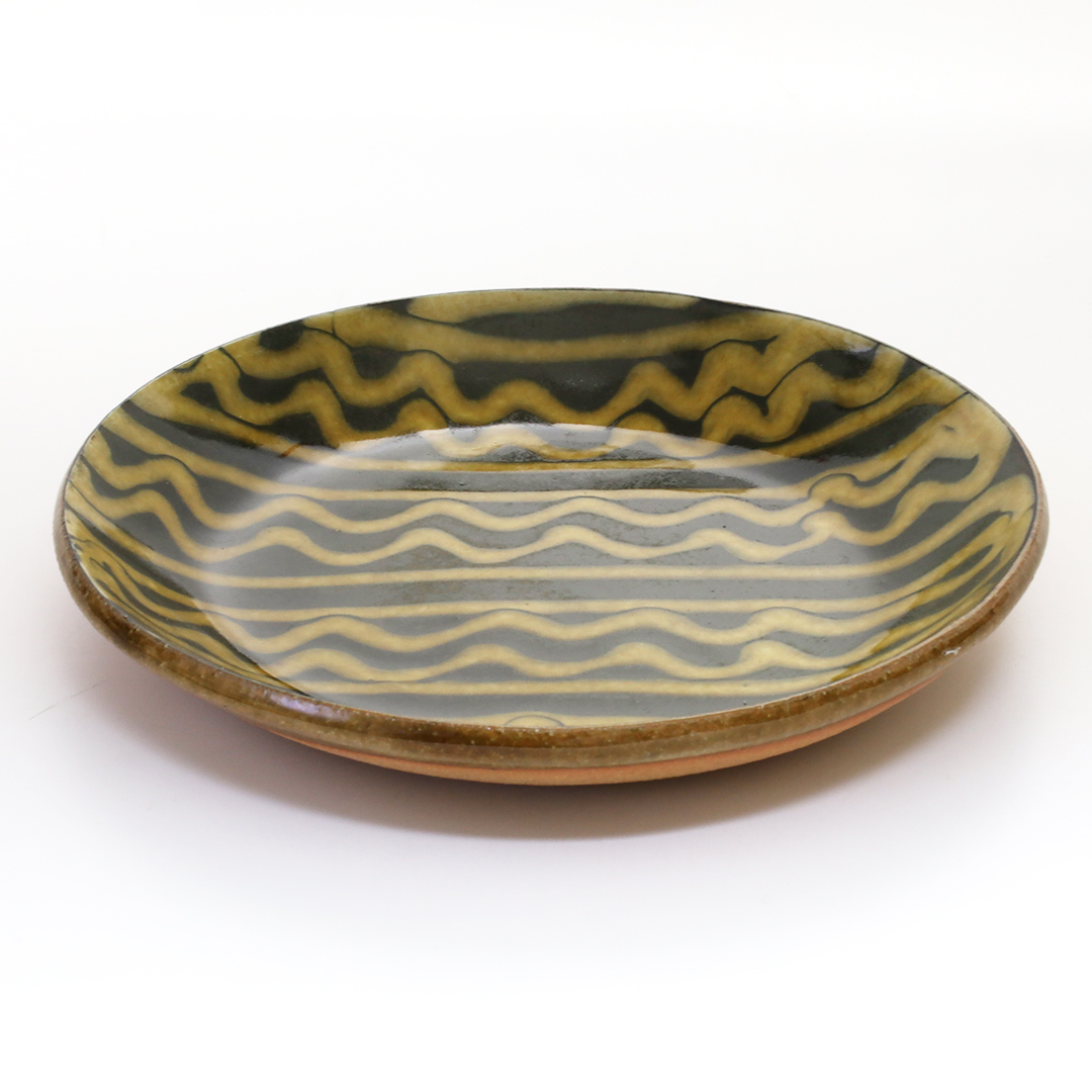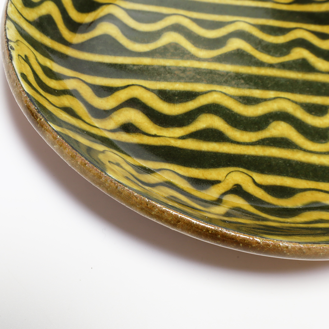 厚みのあるポッテリとした形状に柔らかみがあり、温かみのあるスリップウェアが特徴です。