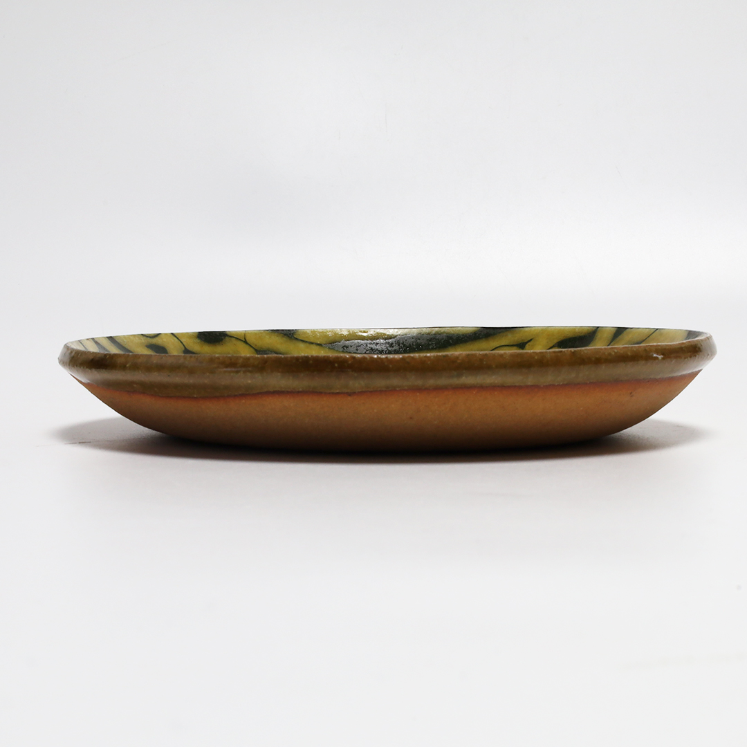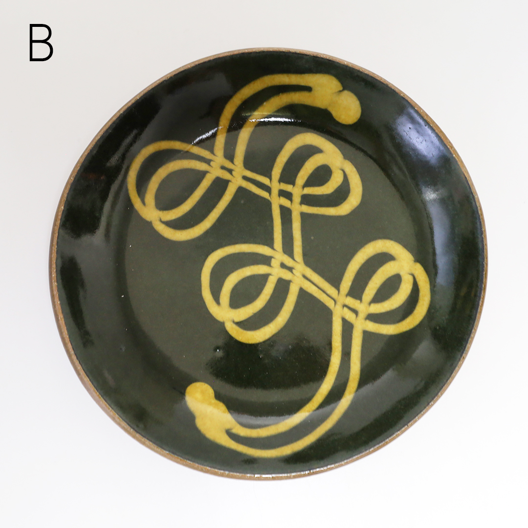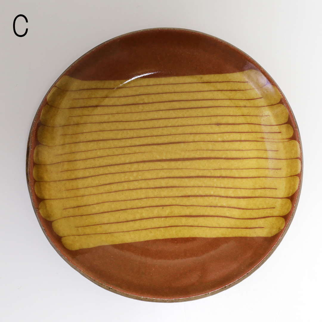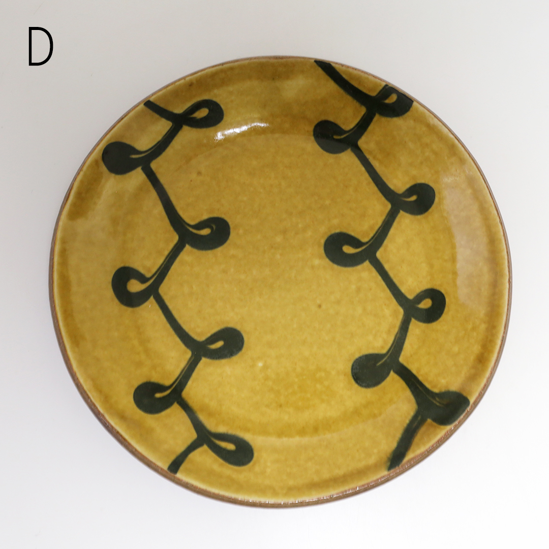 厚みのあるポッテリとした形状に柔らかみがあり、温かみのあるスリップウェアが特徴です。