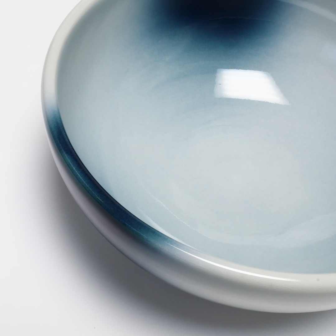 砥部焼の伝統を守りながらも、深海のようなグラデーションのブルーが特徴のヨシュア工房。