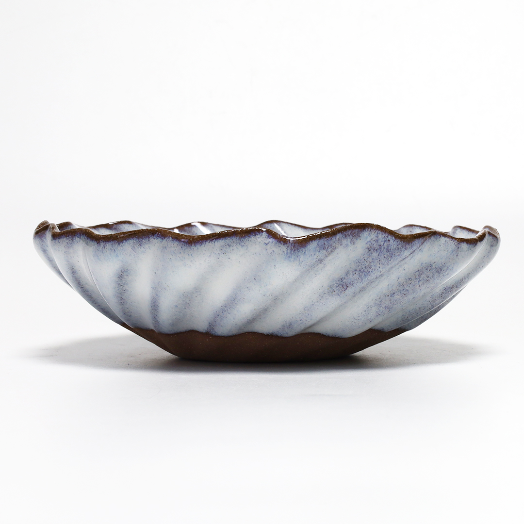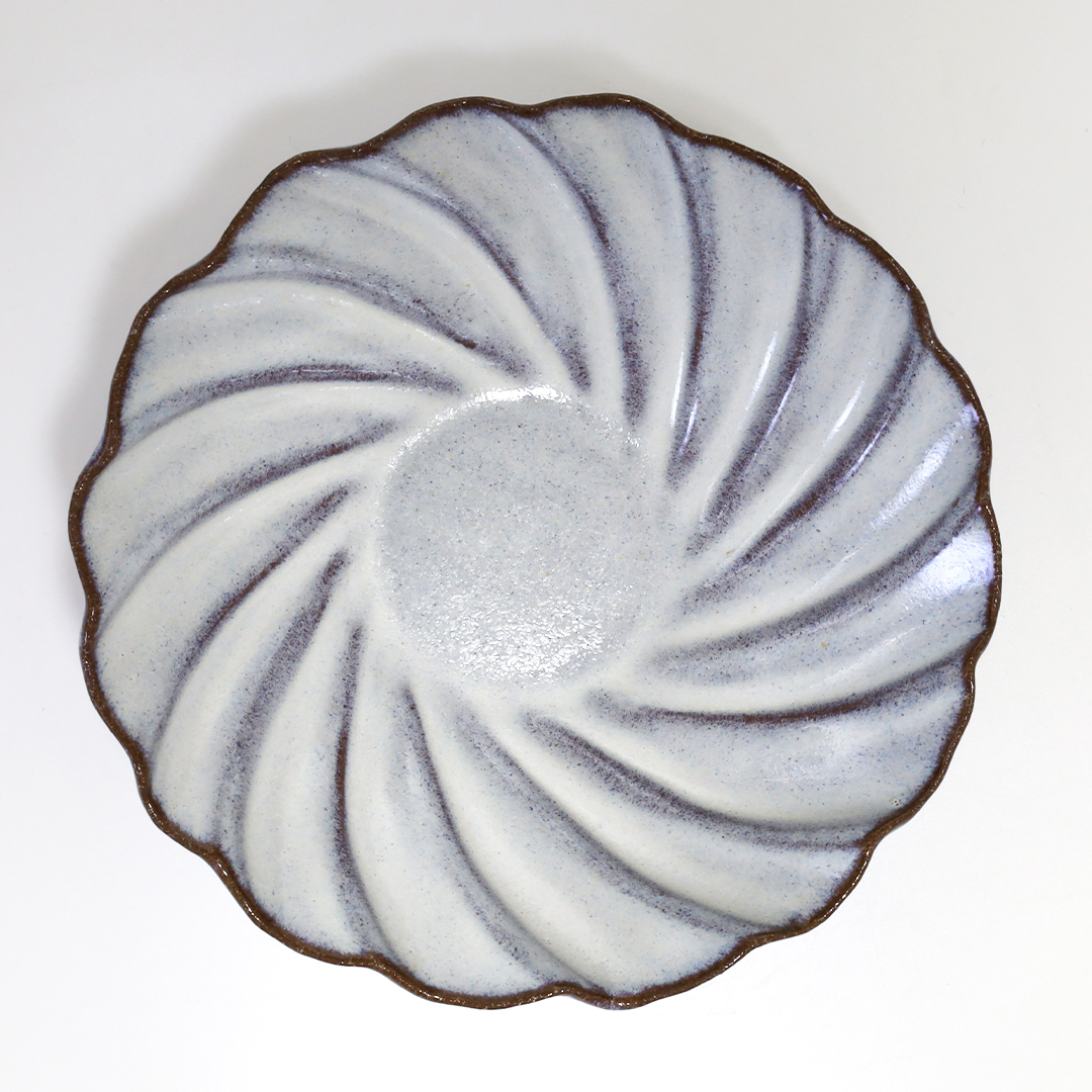 「毎日手に取りたくなるうつわ」を目指して作陶されています。華やかな形状に特徴のあるしのぎの凹凸により釉薬のコントラストを生み出し、味わいのある色味になっています。