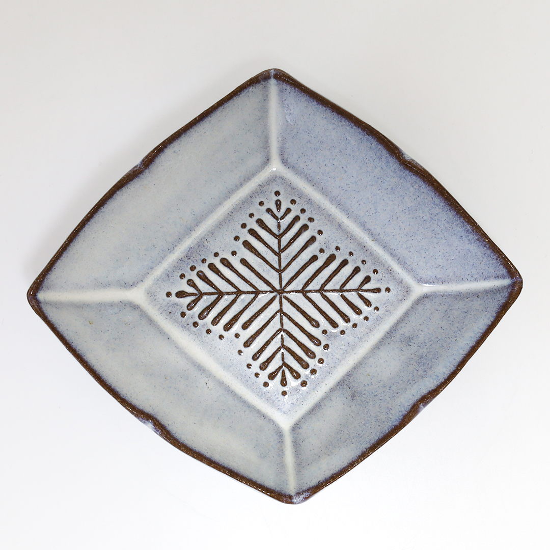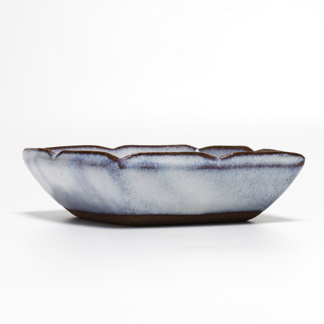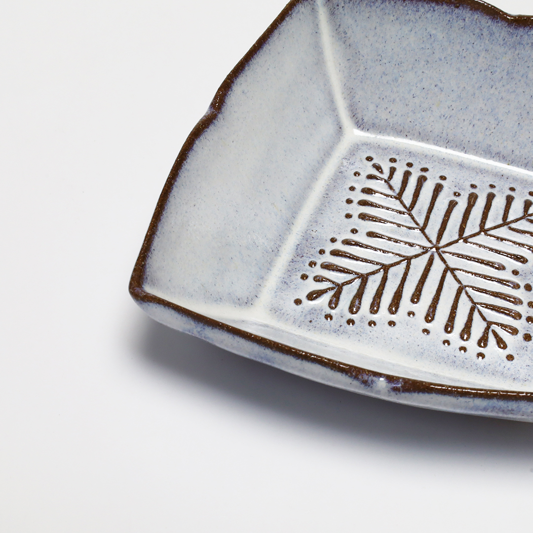 「毎日手に取りたくなるうつわ」を目指して作陶されています。華やかな形状に特徴のあるしのぎの凹凸により釉薬のコントラストを生み出し、味わいのある色味になっています。