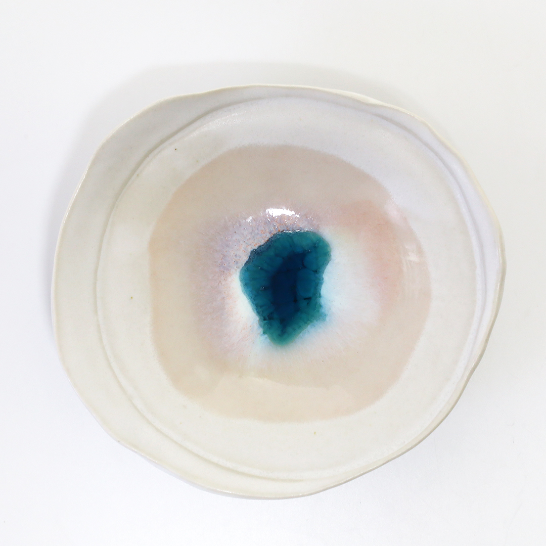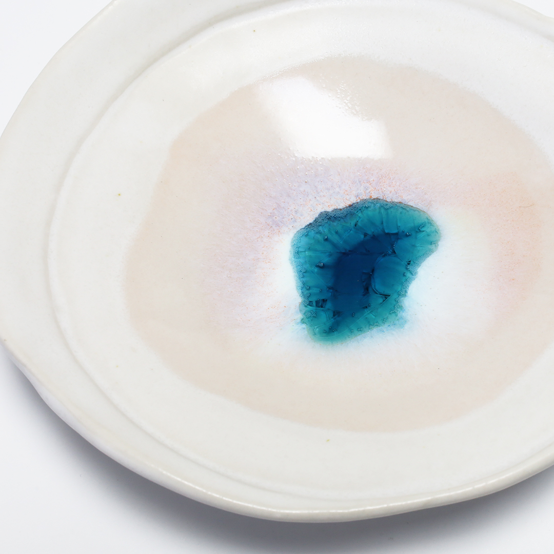 特徴のあるフォルムに白磁に淡いパステルカラーを用い、それぞれのテーマを器で表現しています。