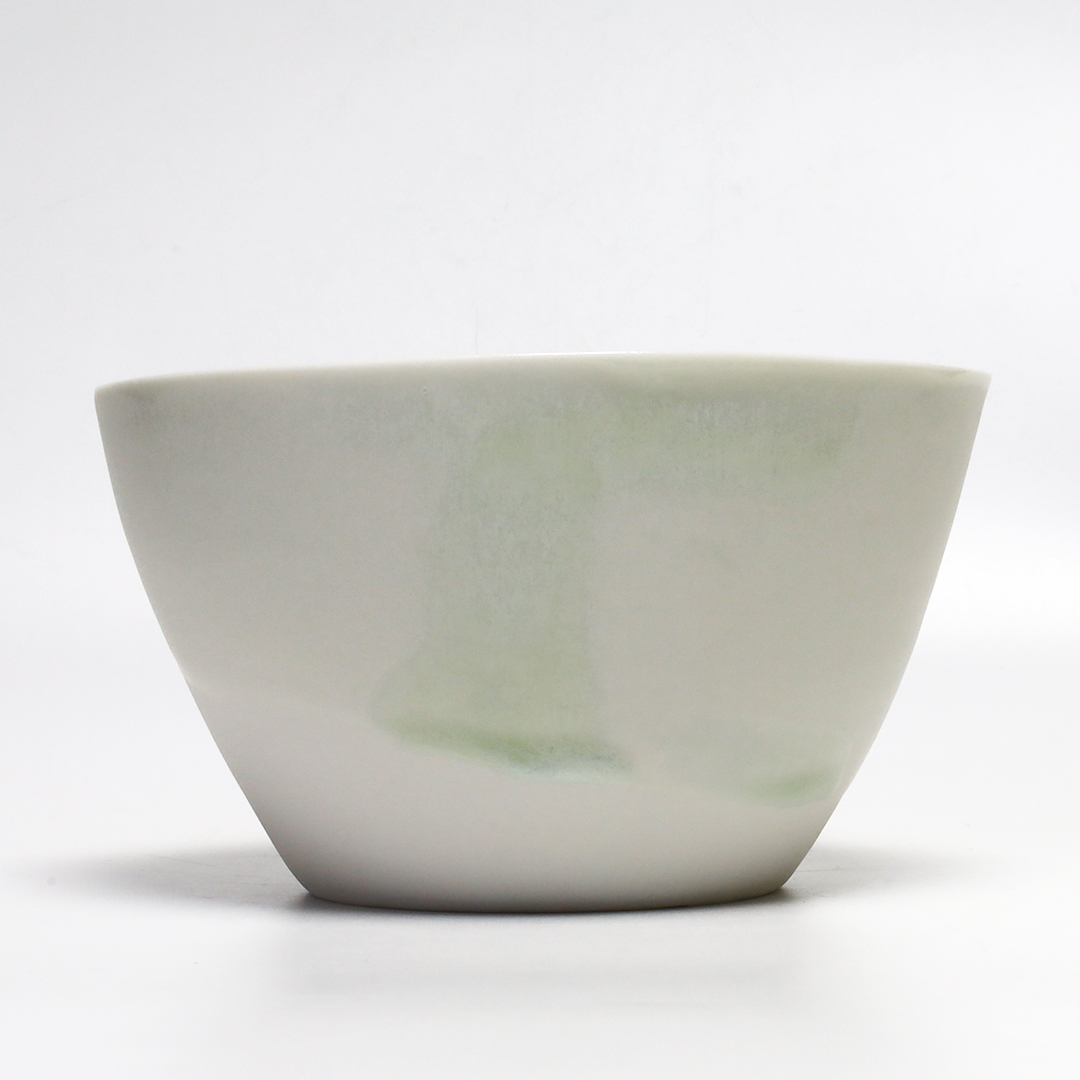 特徴のあるフォルムに白磁に淡いパステルカラーを用い、それぞれのテーマを器で表現しています。