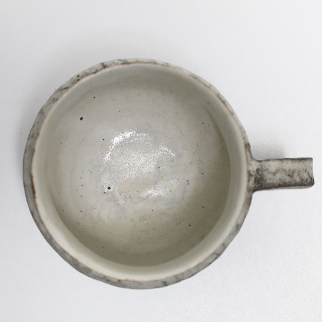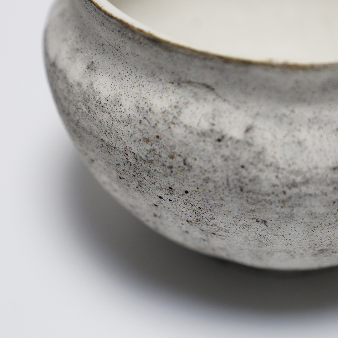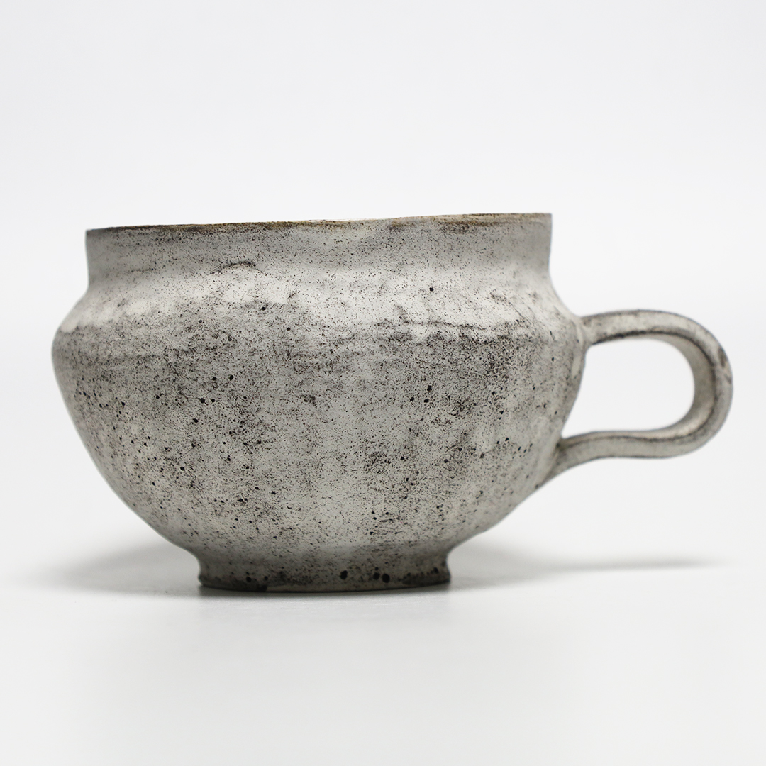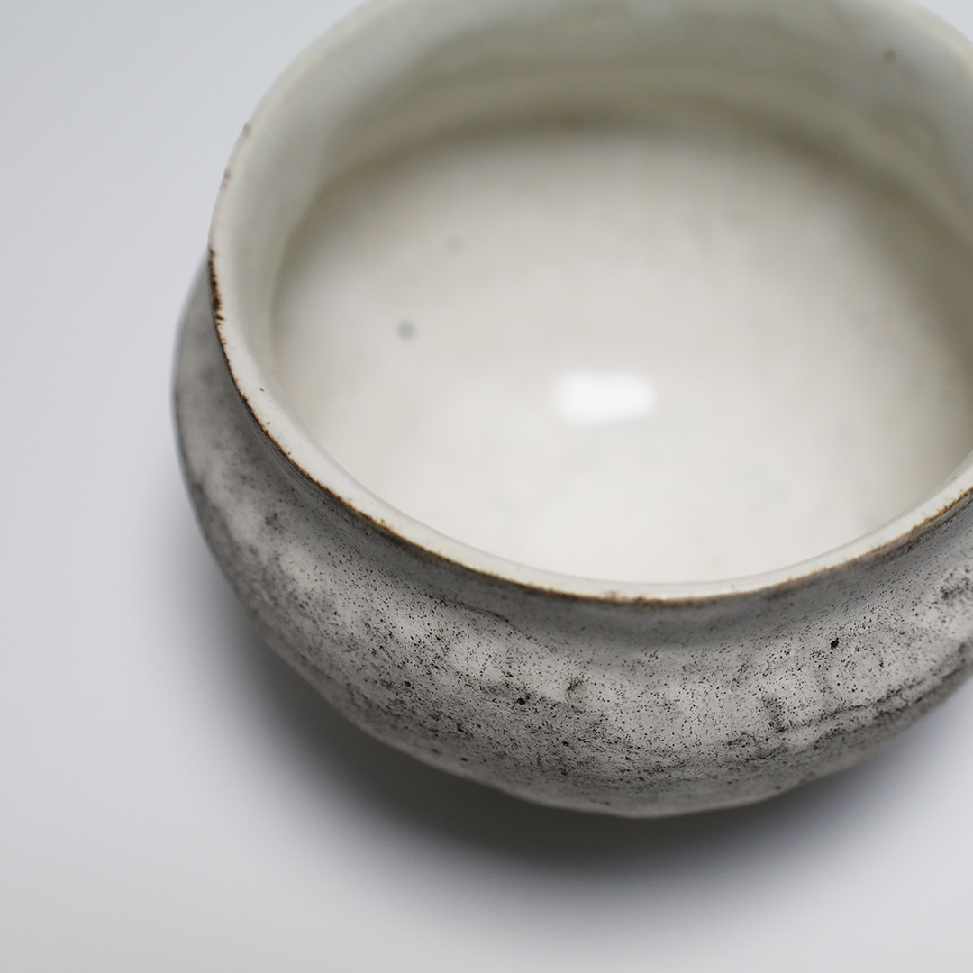 手捻りや型を用いて成形したのち、作品を水に沈め、自然に造形を委ねながら、作為と無作為のあわいを漂いながら作られ、時を積み重ねたような風合いを出しています。