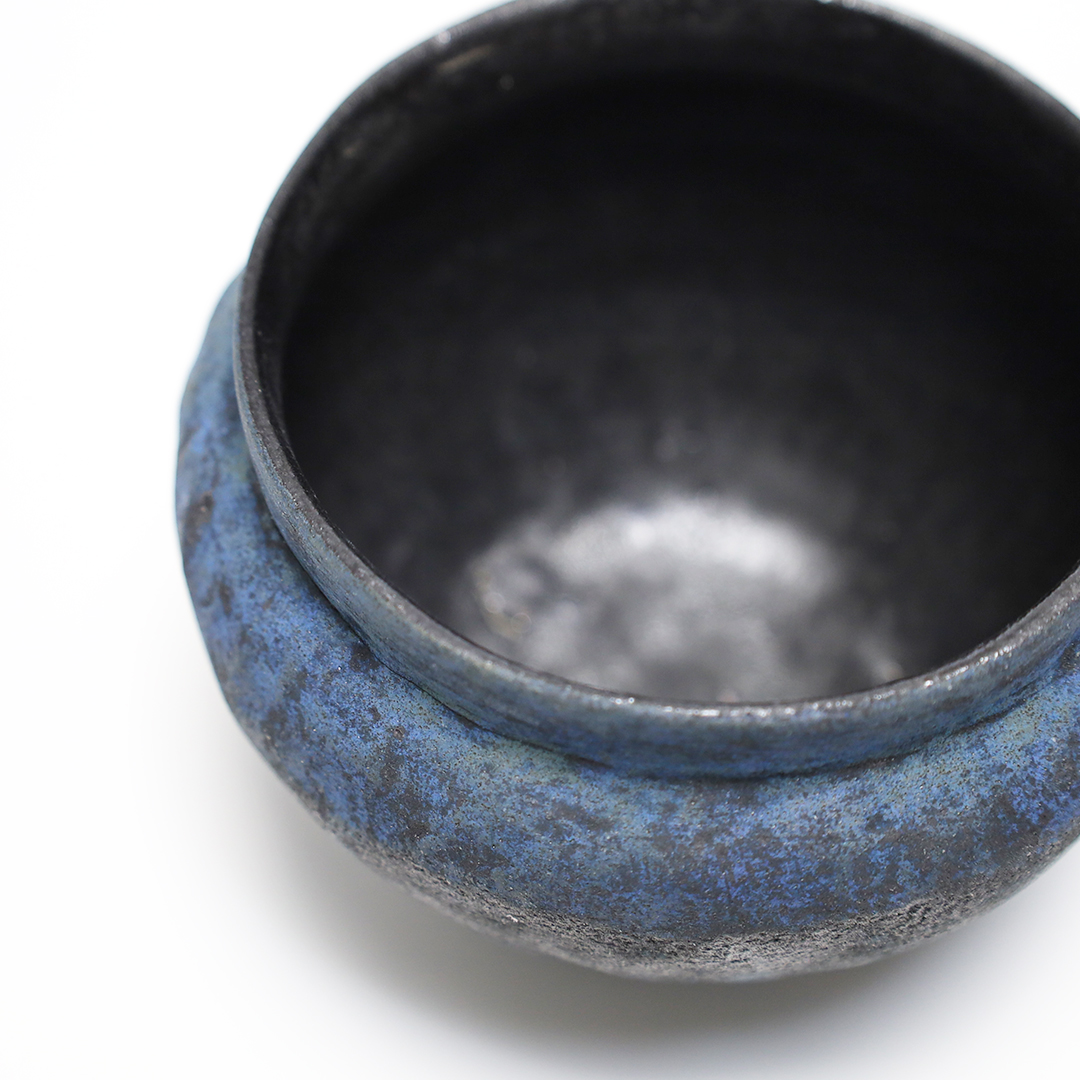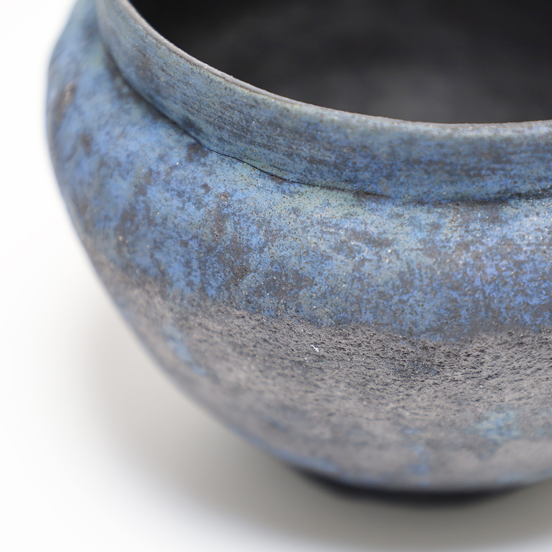手捻りや型を用いて成形したのち、作品を水に沈め、自然に造形を委ねながら、作為と無作為のあわいを漂いながら作られ、時を積み重ねたような風合いを出しています。