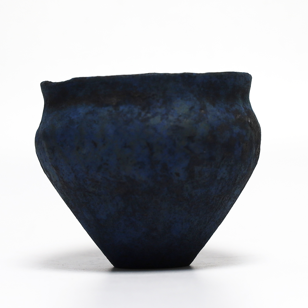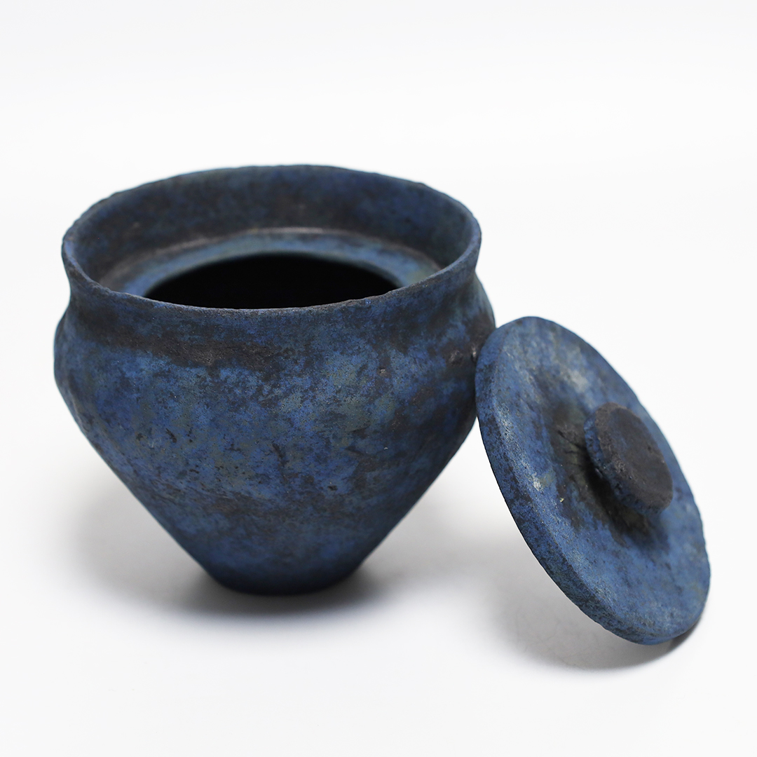 手捻りや型を用いて成形したのち、作品を水に沈め、自然に造形を委ねながら、作為と無作為のあわいを漂いながら作られ、時を積み重ねたような風合いを出しています。