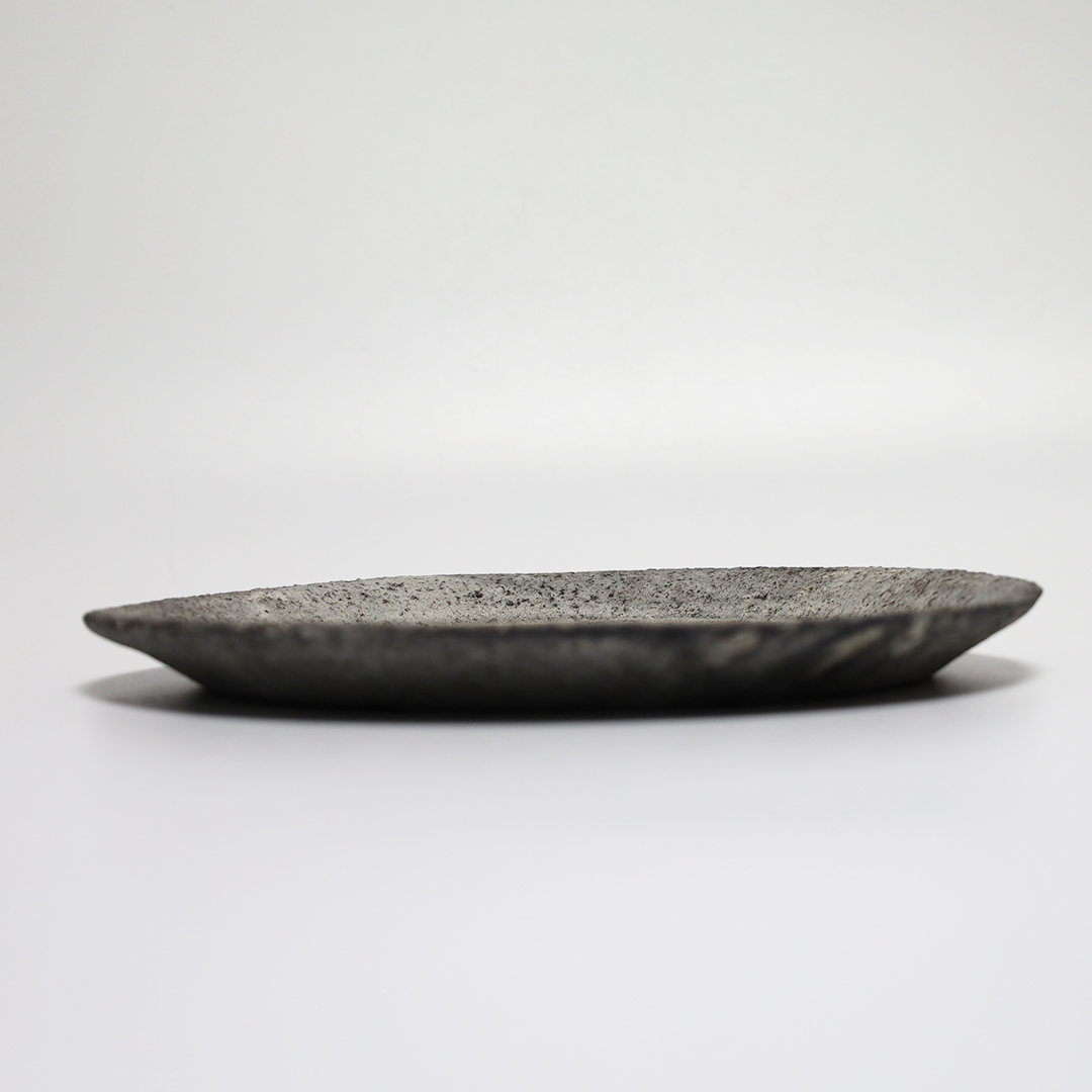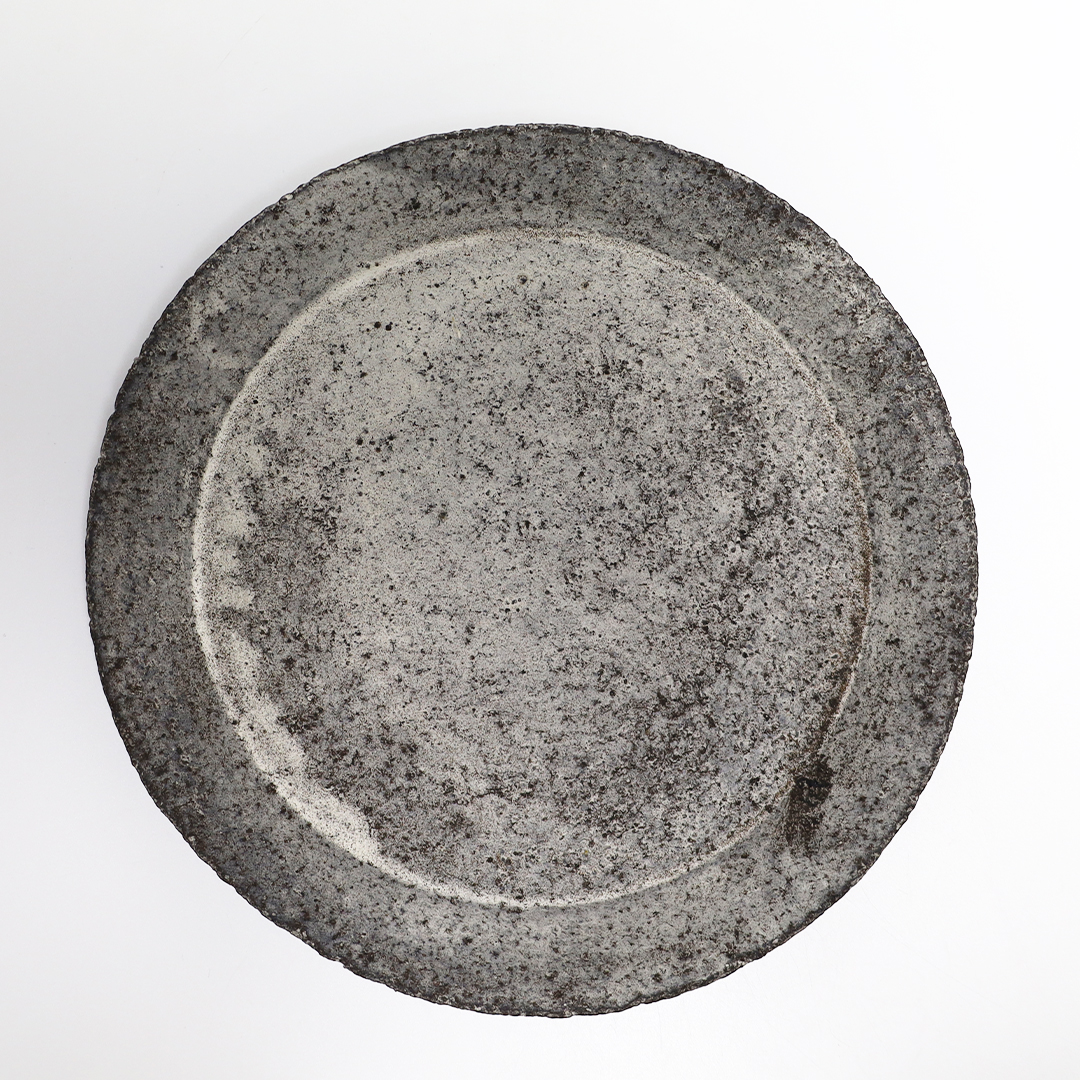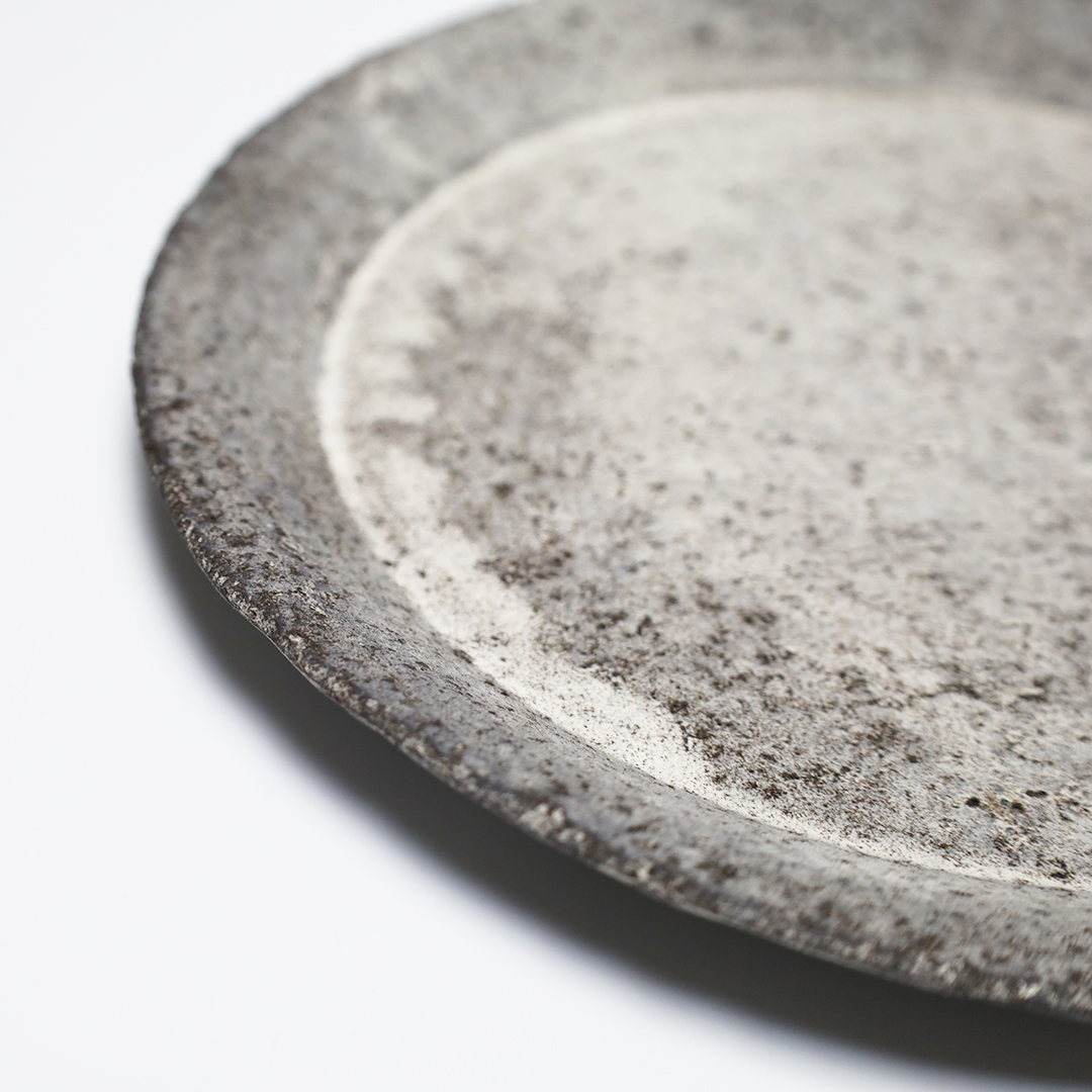 手捻りや型を用いて成形したのち、作品を水に沈め、自然に造形を委ねながら、作為と無作為のあわいを漂いながら作られ、時を積み重ねたような風合いを出しています。