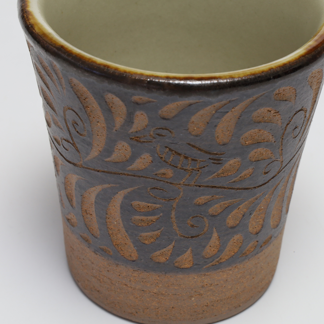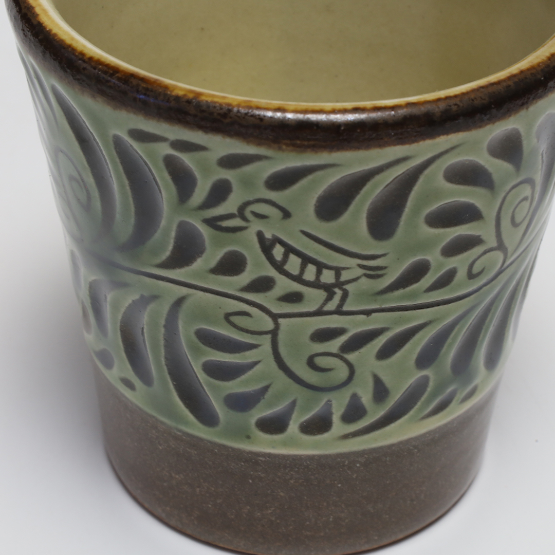 クイナの足跡が彫られていたり、茂みの中に亀やクイナが隠れていたり、遊び心もある器です。