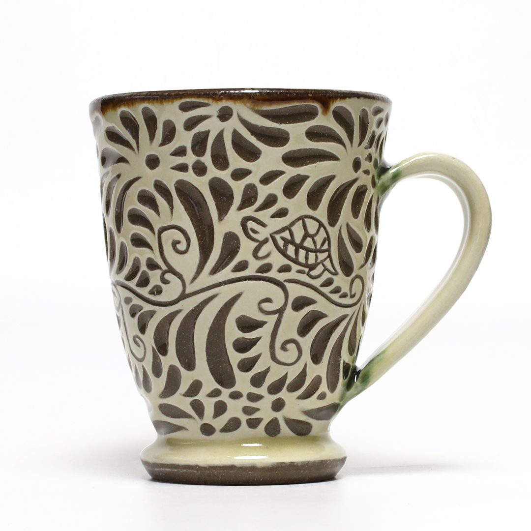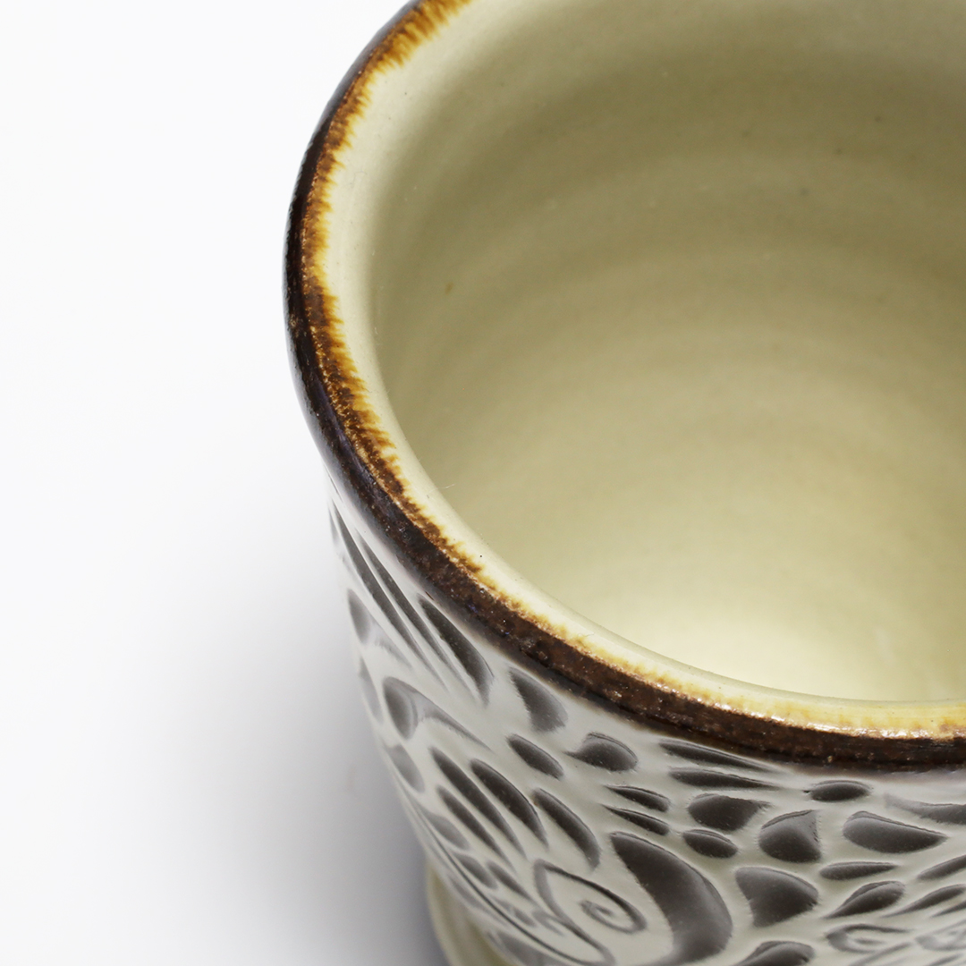 クイナの足跡が彫られていたり、茂みの中に亀やクイナが隠れていたり、遊び心もある器です。