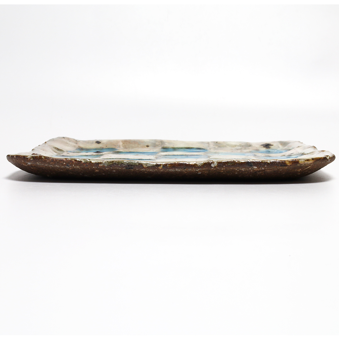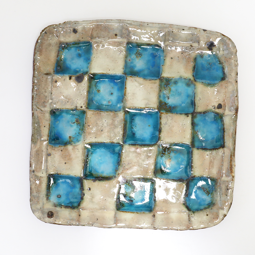 小辻真一 春萌窯 青市松皿・正方形