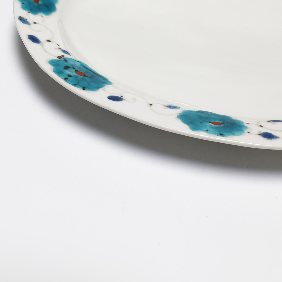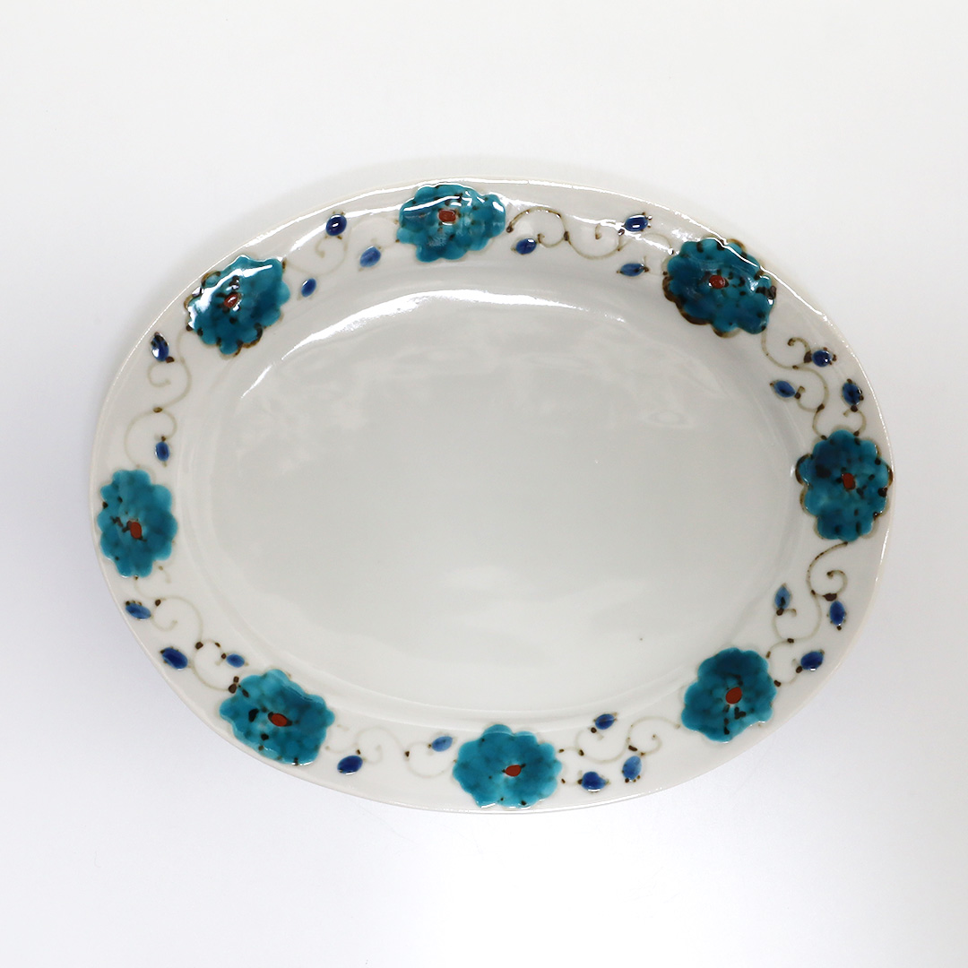 特に、九谷焼の五彩「赤」「青」「黄」「紺青」「紫」の色にこだわりをもっており、独自の配合の絵具を用いて、納得のいく色が出るまで何度も窯に入れるなど、丁寧な加飾をされています。