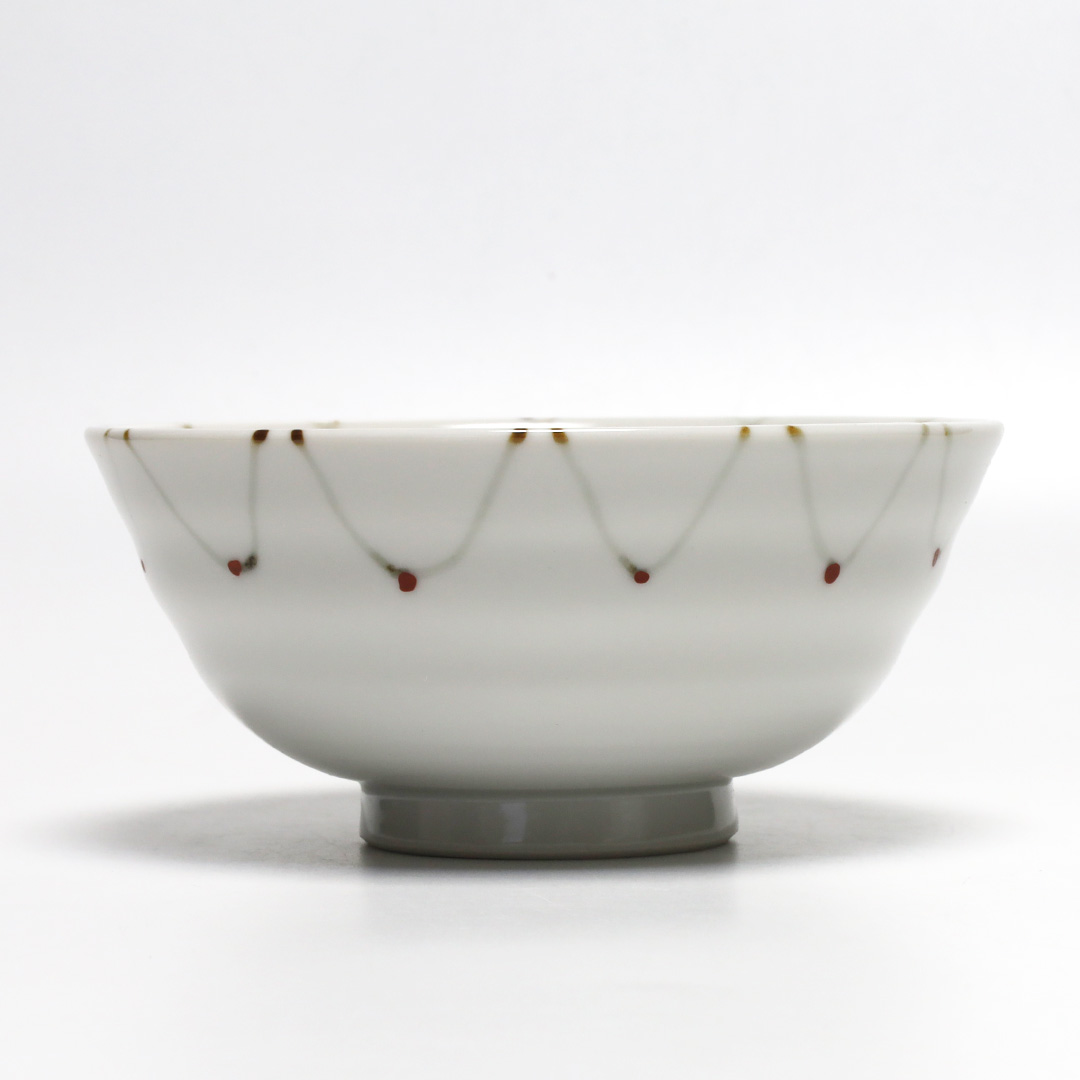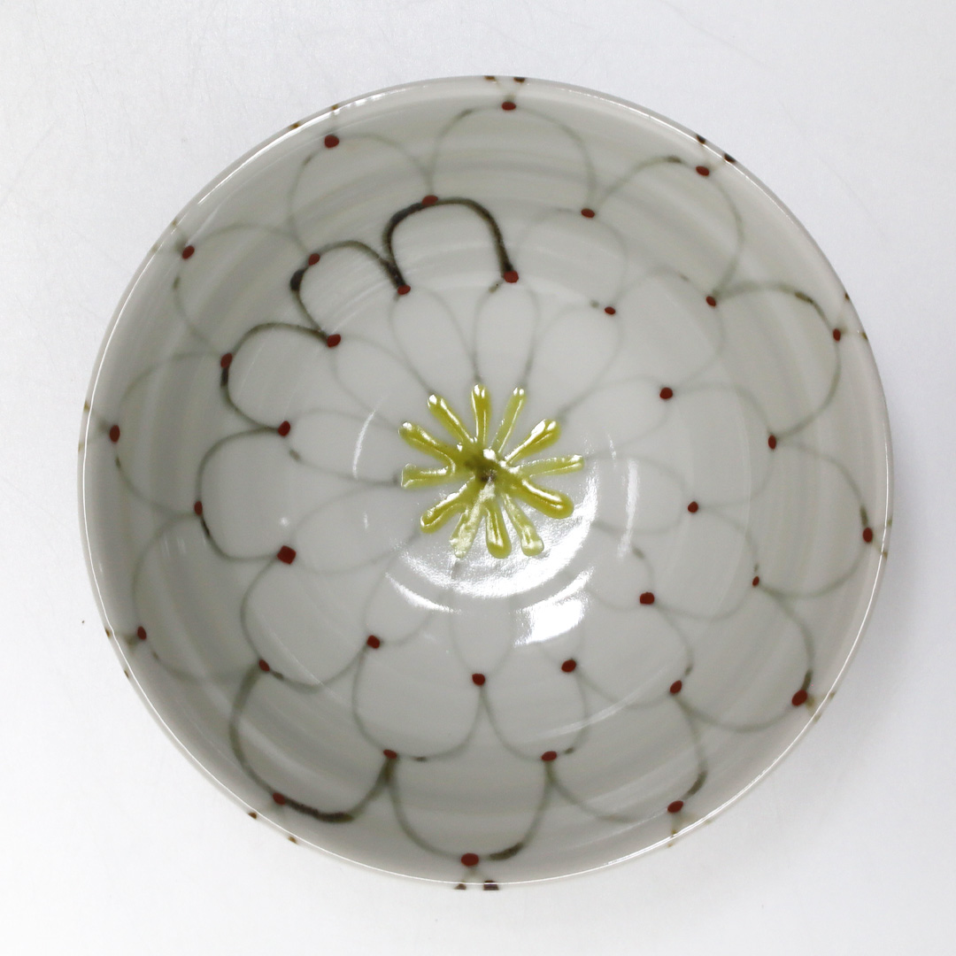 特に、九谷焼の五彩「赤」「青」「黄」「紺青」「紫」の色にこだわりをもっており、独自の配合の絵具を用いて、納得のいく色が出るまで何度も窯に入れるなど、丁寧な加飾をされています。