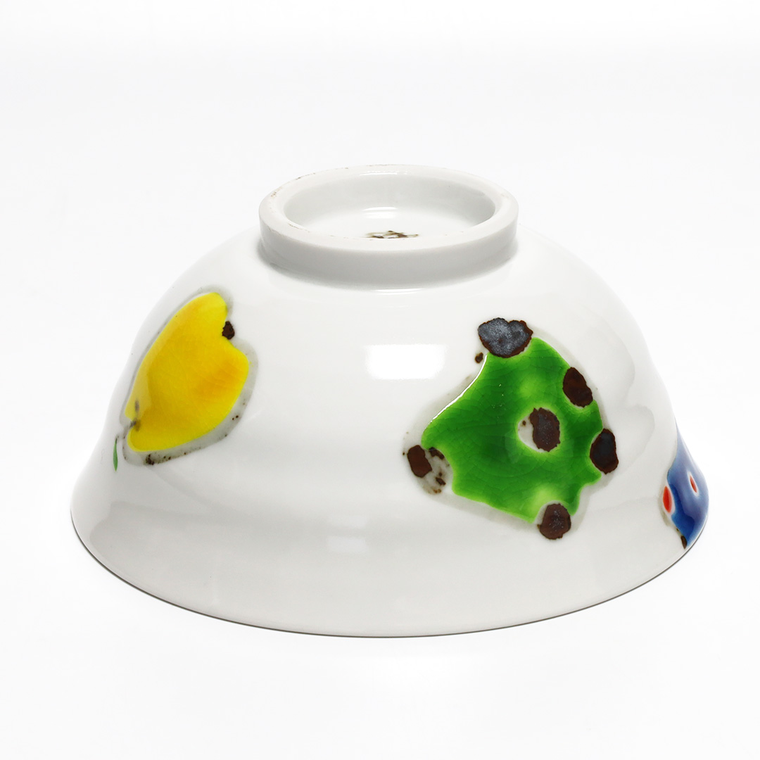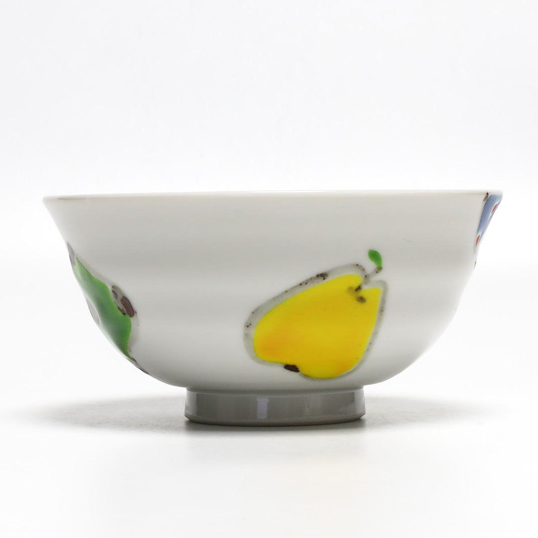 特に、九谷焼の五彩「赤」「青」「黄」「紺青」「紫」の色にこだわりをもっており、独自の配合の絵具を用いて、納得のいく色が出るまで何度も窯に入れるなど、丁寧な加飾をされています。