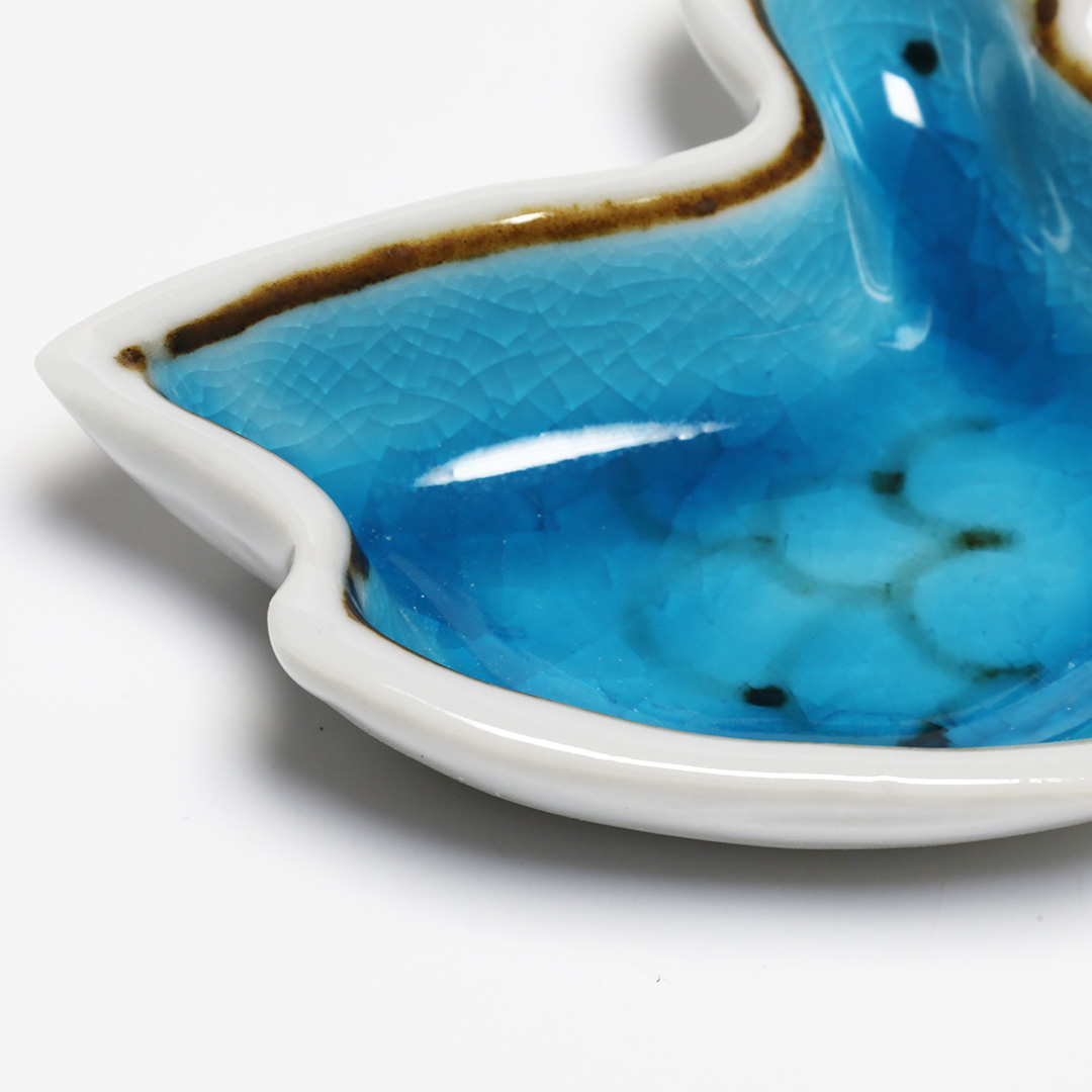 特に、九谷焼の五彩「赤」「青」「黄」「紺青」「紫」の色にこだわりをもっており、独自の配合の絵具を用いて、納得のいく色が出るまで何度も窯に入れるなど、丁寧な加飾をされています。