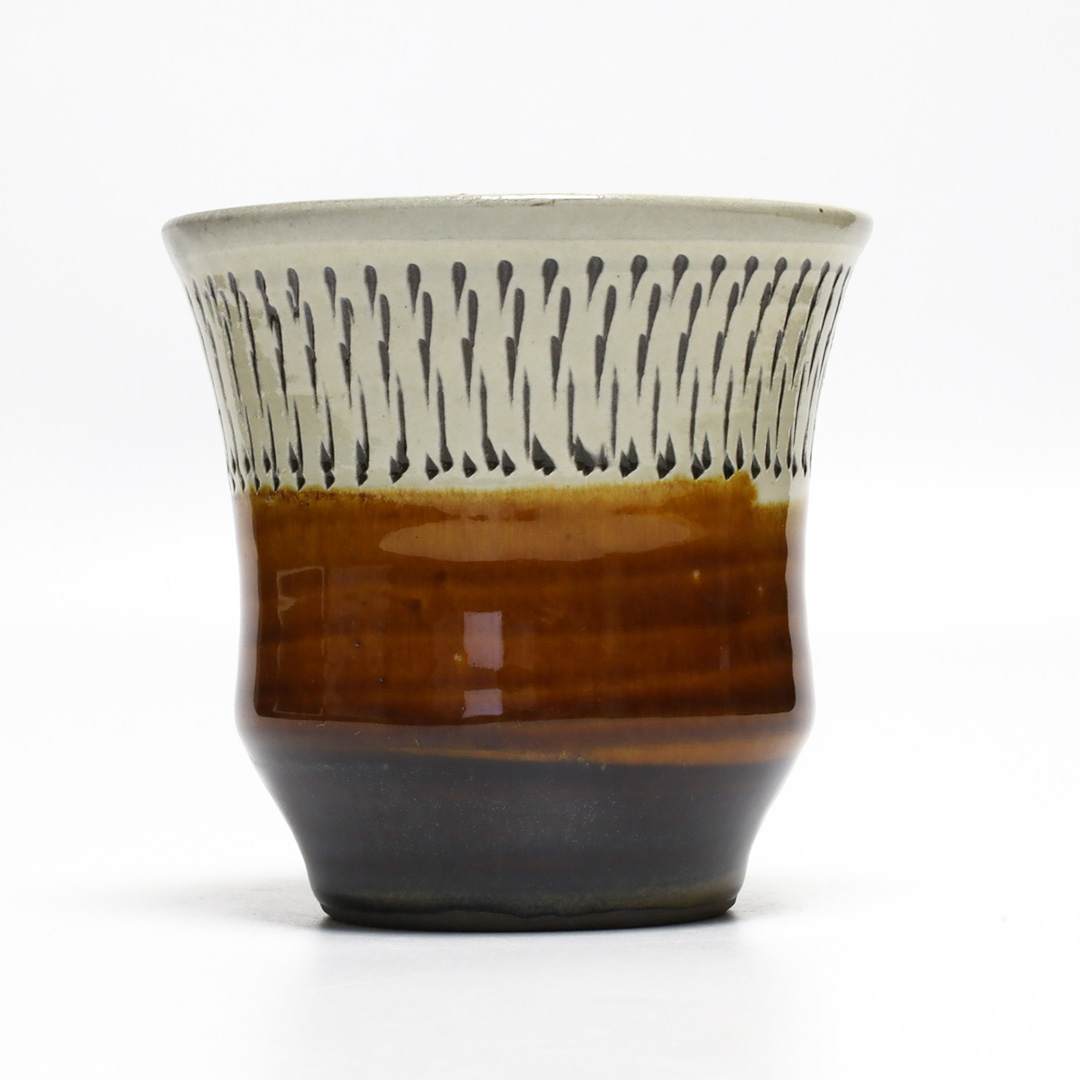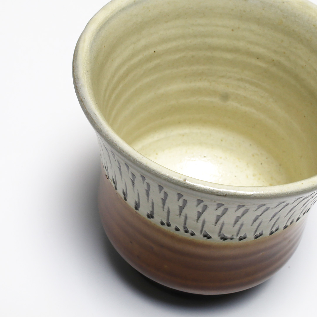 小鹿田焼らしく、力強い飛鉋の模様が特徴的です。