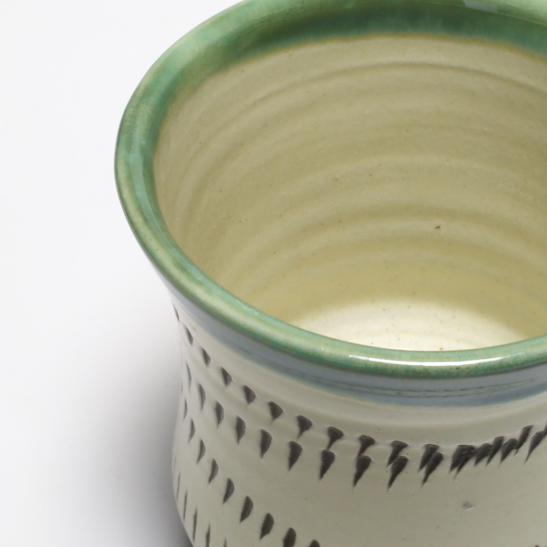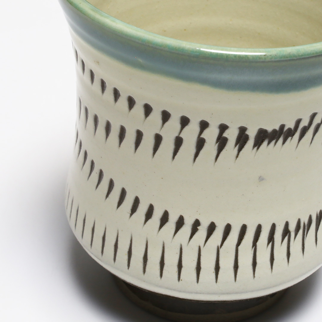 小鹿田焼らしく、力強い飛鉋の模様が特徴的です。