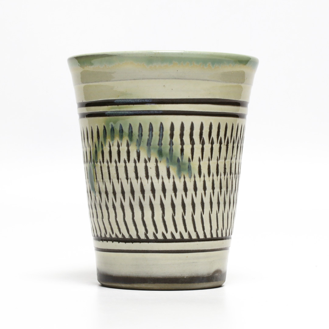 小鹿田焼らしく、力強い飛鉋の模様が特徴的です。