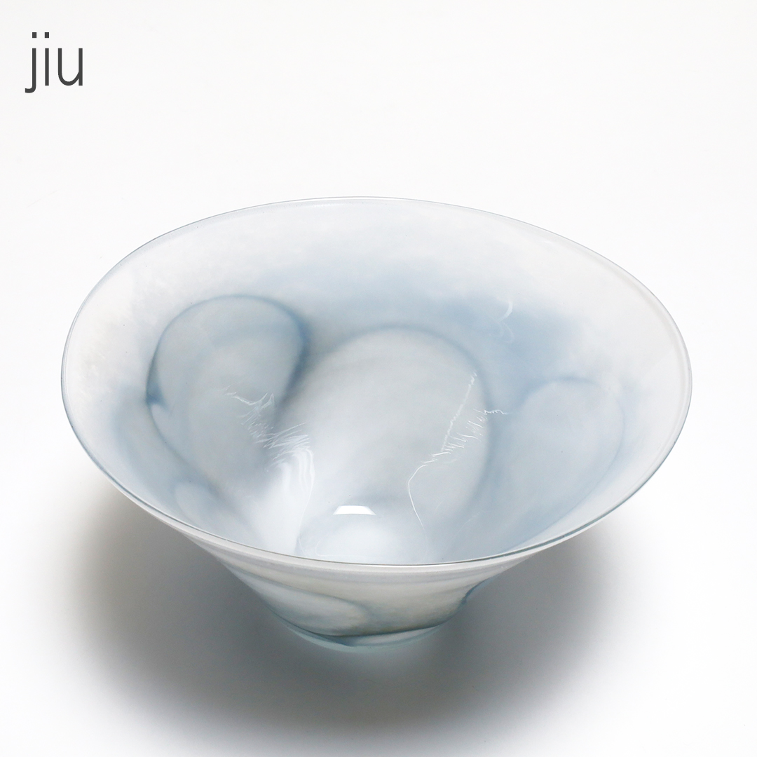 透明なガラスの特性を最大限に活かし、水彩画のような複雑な色の重ねや独自の模様表現をされています。