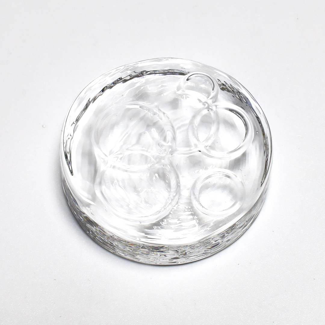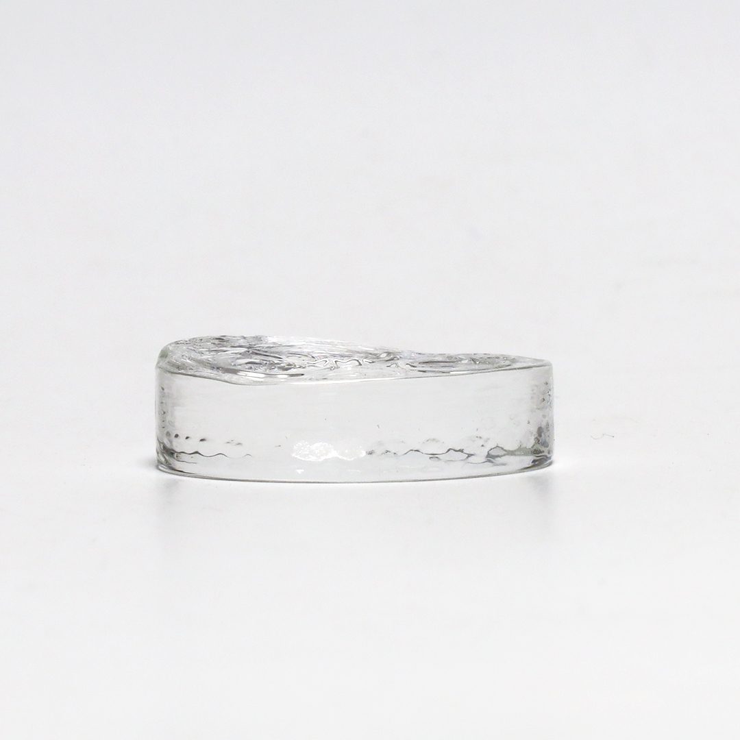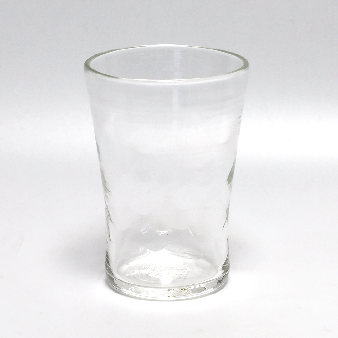 熔解炉(窯)を自作し、珪砂をはじめとした10数種類のガラス原料を選定・調合、吹く時に型を使うときは型を自作するなど、ガラスに関することはできる限り自分たちの手でおこなっています。、シンプルながら印象に残るテクスチャが光を受けて輝きます。