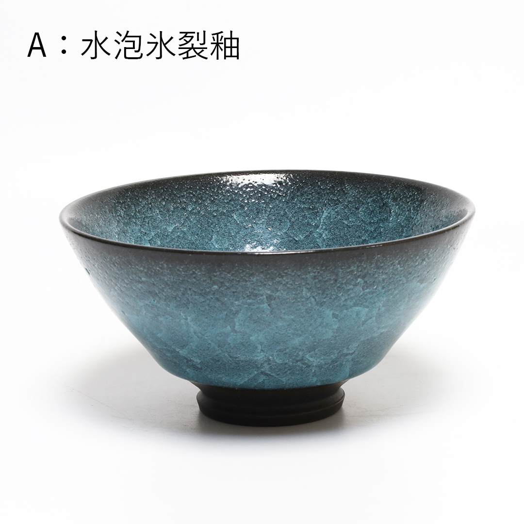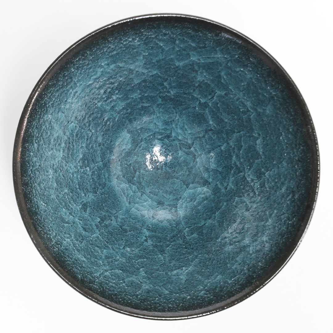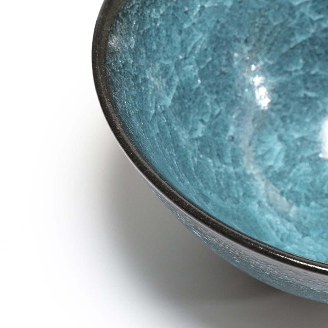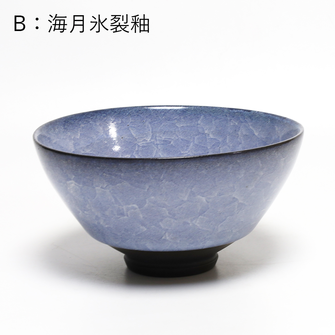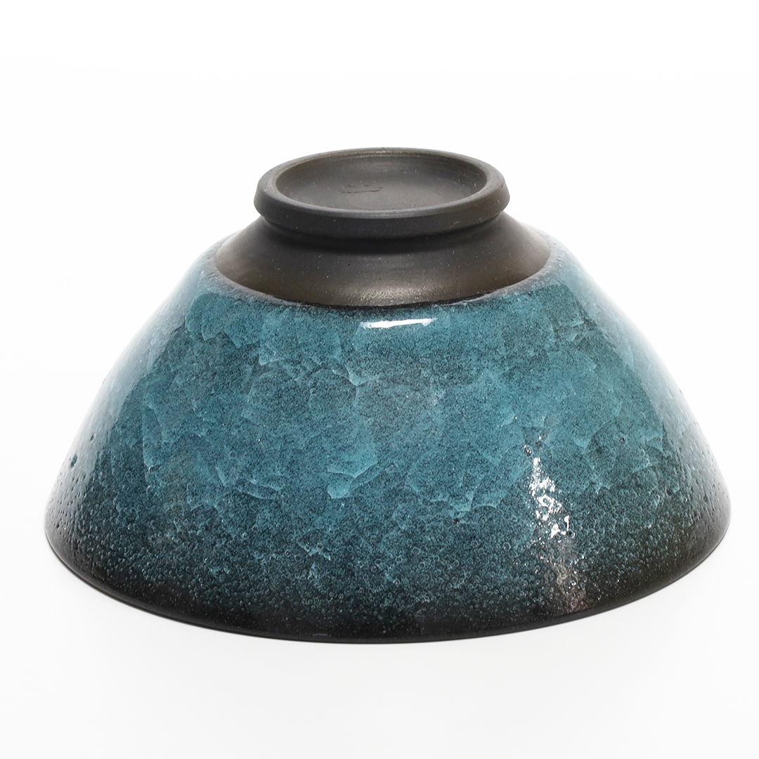 釉薬の種類のひとつである氷裂貫入釉の作品で、素地の土と釉薬の焼いた時の収縮率の違いによって起こる細かな貫入(ガラスのひび割れのこと)が特長で、 氷が割れたように見える表現方法の一つです。