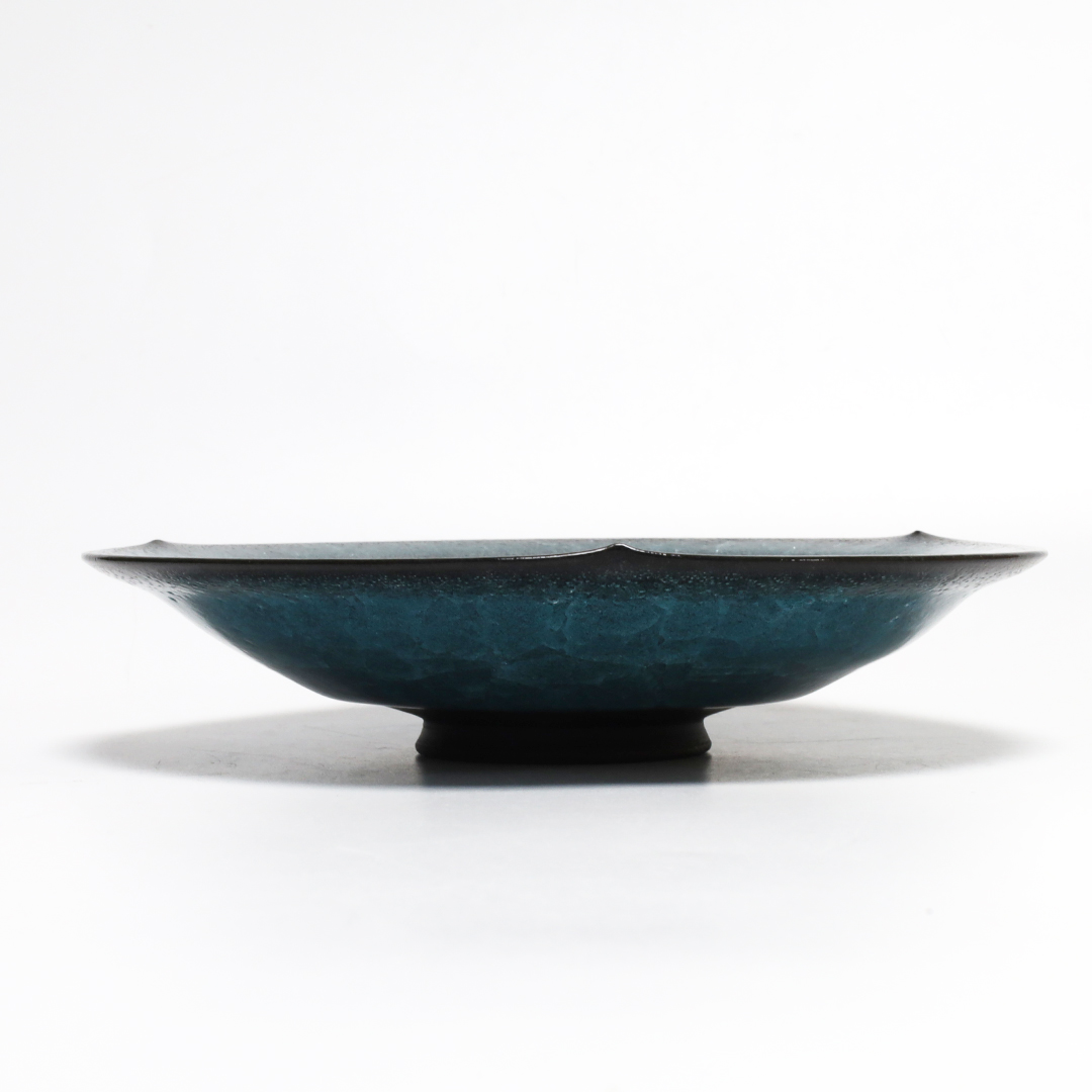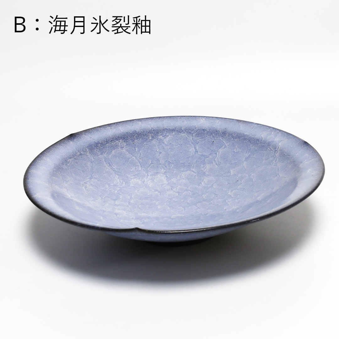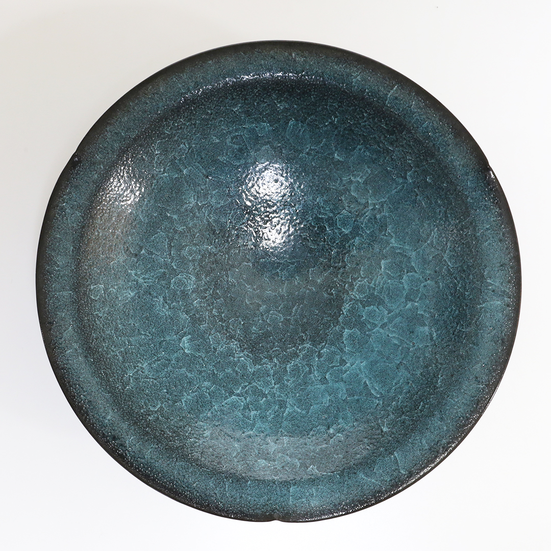 釉薬の種類のひとつである氷裂貫入釉の作品で、素地の土と釉薬の焼いた時の収縮率の違いによって起こる細かな貫入(ガラスのひび割れのこと)が特長で、 氷が割れたように見える表現方法の一つです。