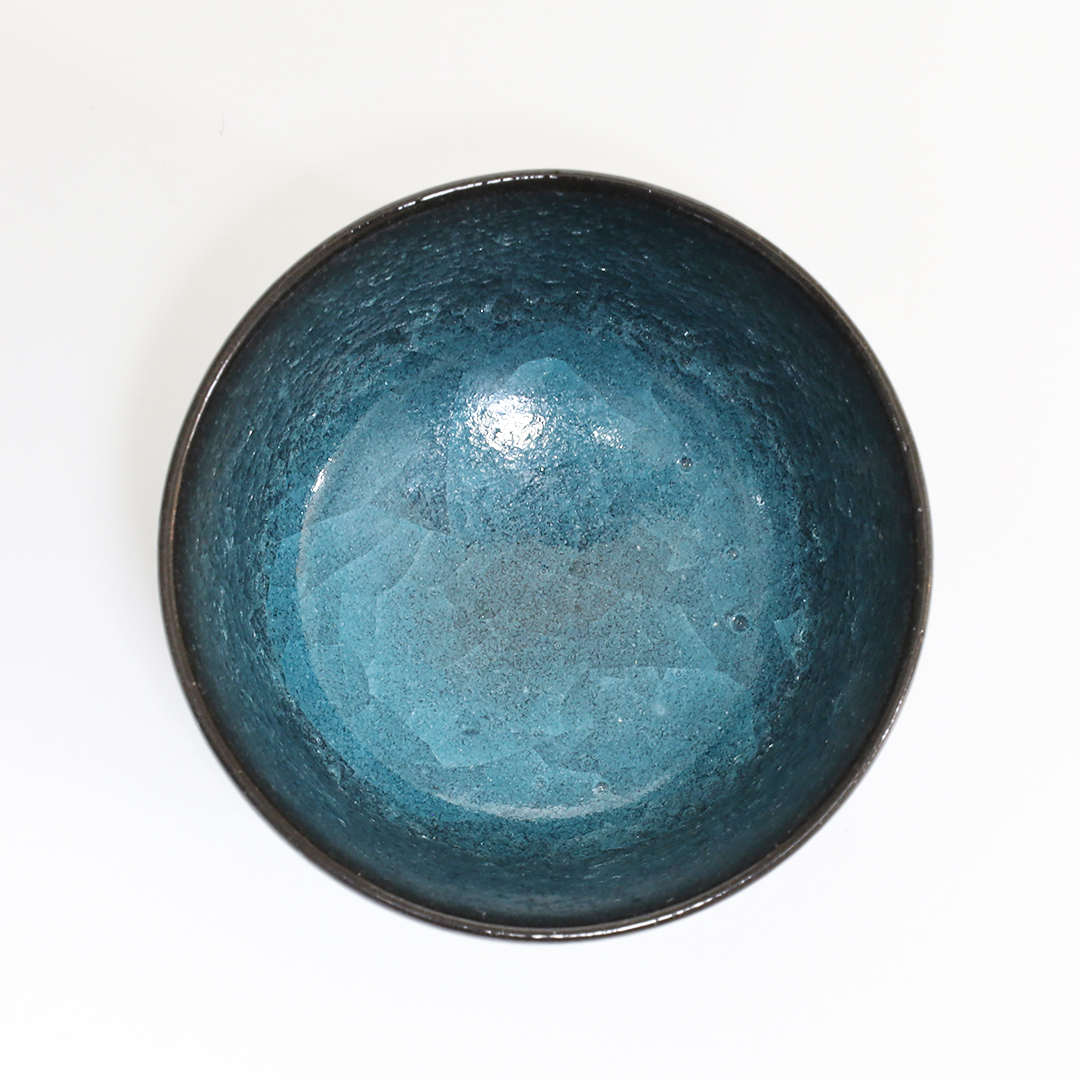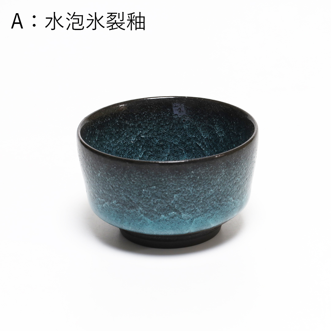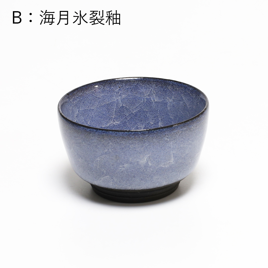 釉薬の種類のひとつである氷裂貫入釉の作品で、素地の土と釉薬の焼いた時の収縮率の違いによって起こる細かな貫入(ガラスのひび割れのこと)が特長で、 氷が割れたように見える表現方法の一つです。