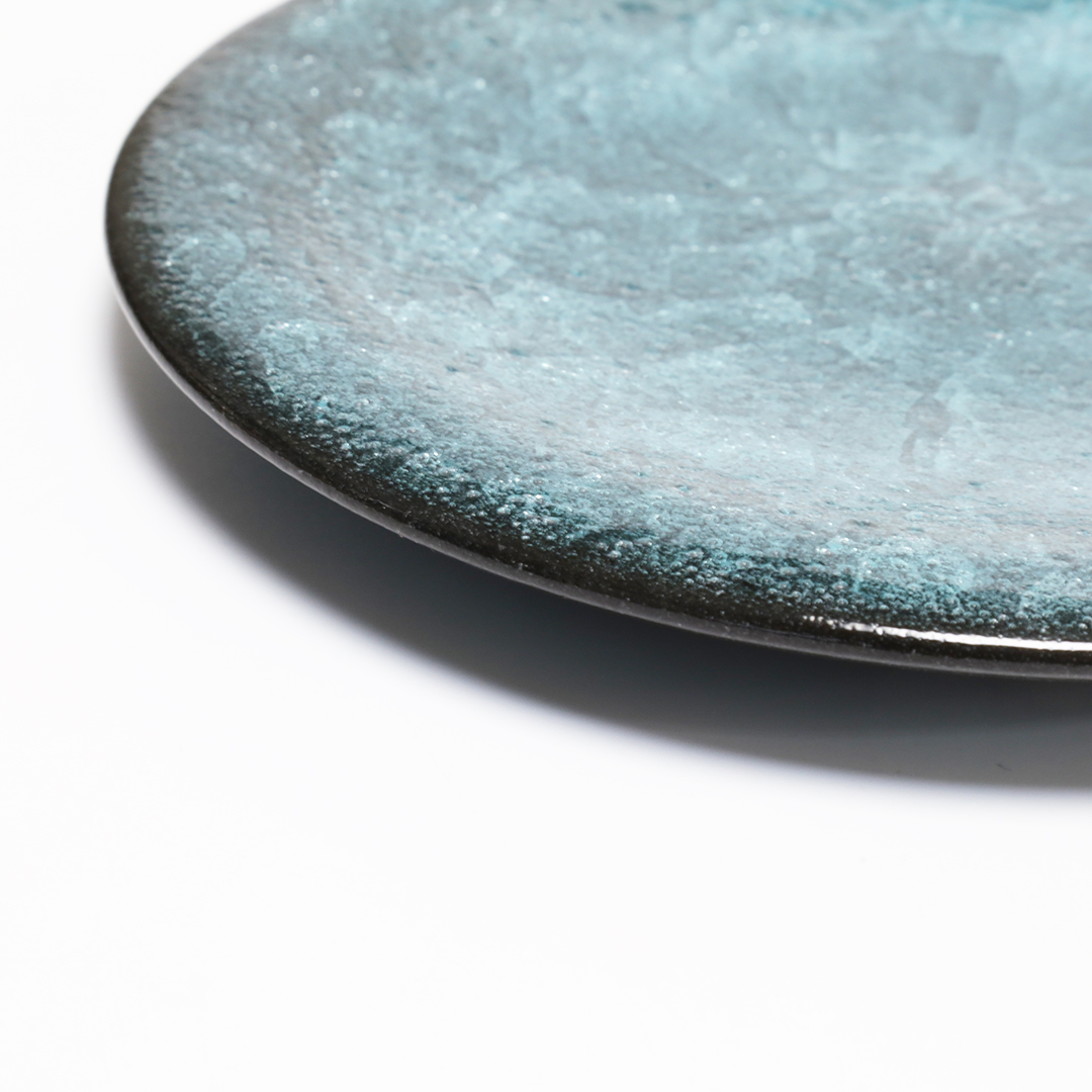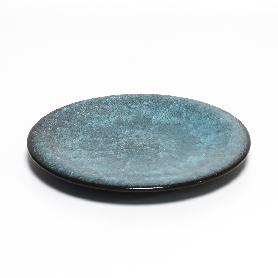 釉薬の種類のひとつである氷裂貫入釉の作品で、素地の土と釉薬の焼いた時の収縮率の違いによって起こる細かな貫入(ガラスのひび割れのこと)が特長で、 氷が割れたように見える表現方法の一つです。