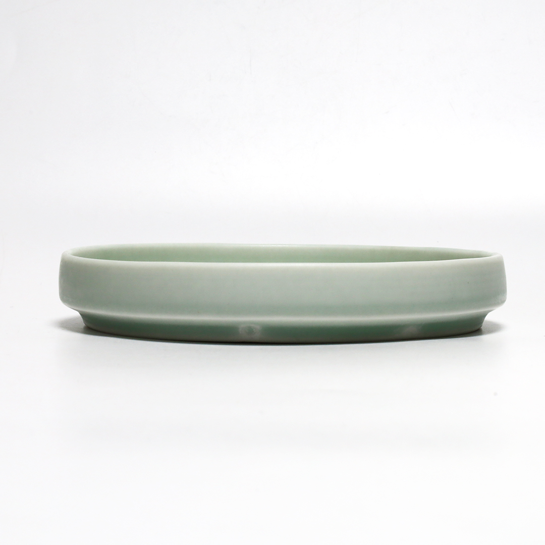 透光性の強い磁土を使用しており、釉薬は淡い色彩の磨りガラスのような質感です。
