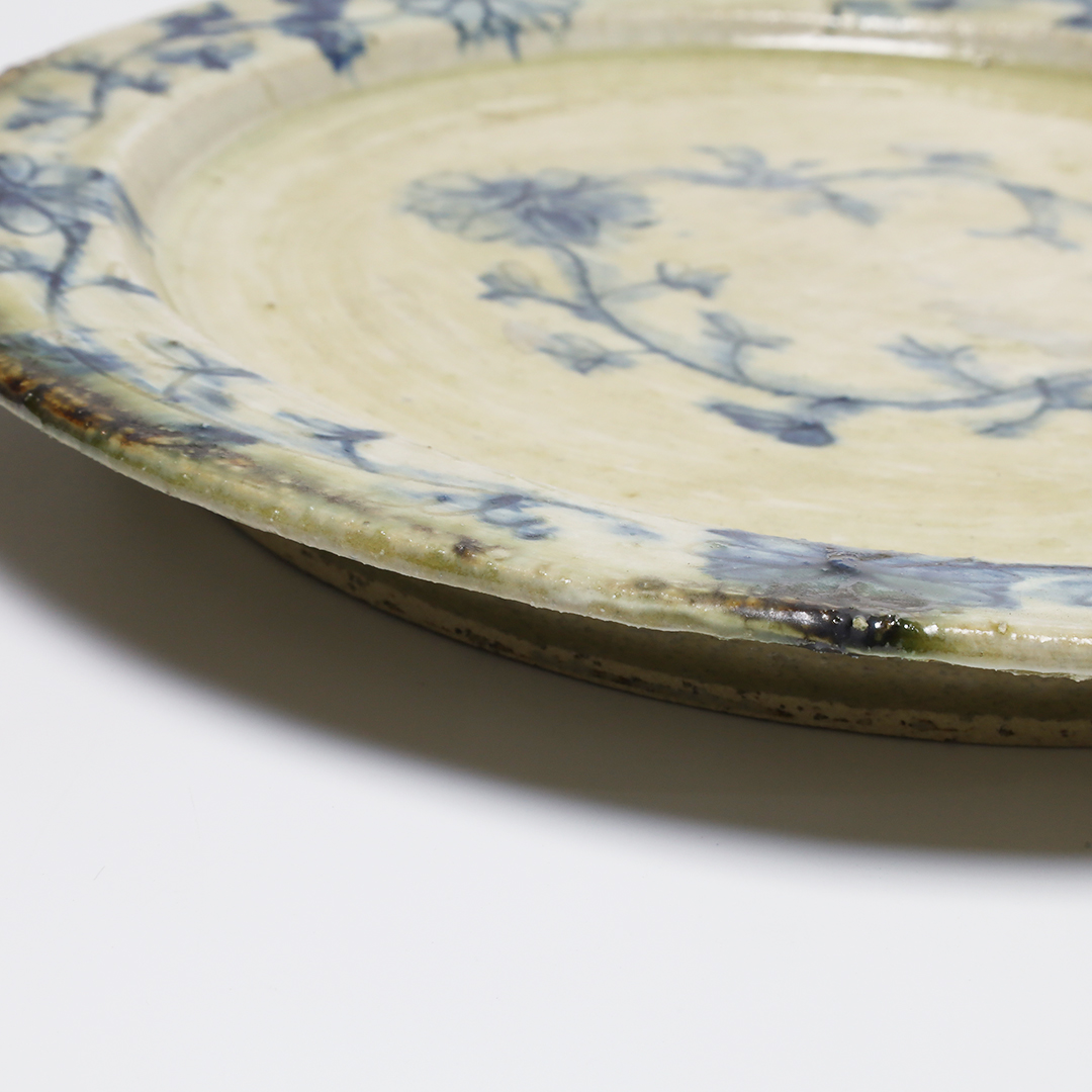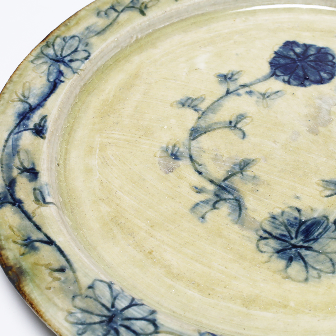 絵柄の上から灰釉をかけているので、絵柄が滲みアンティークな趣の味のある器になっています。