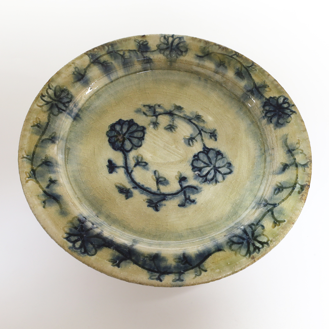 絵柄の上から灰釉をかけているので、絵柄が滲みアンティークな趣の味のある器になっています。