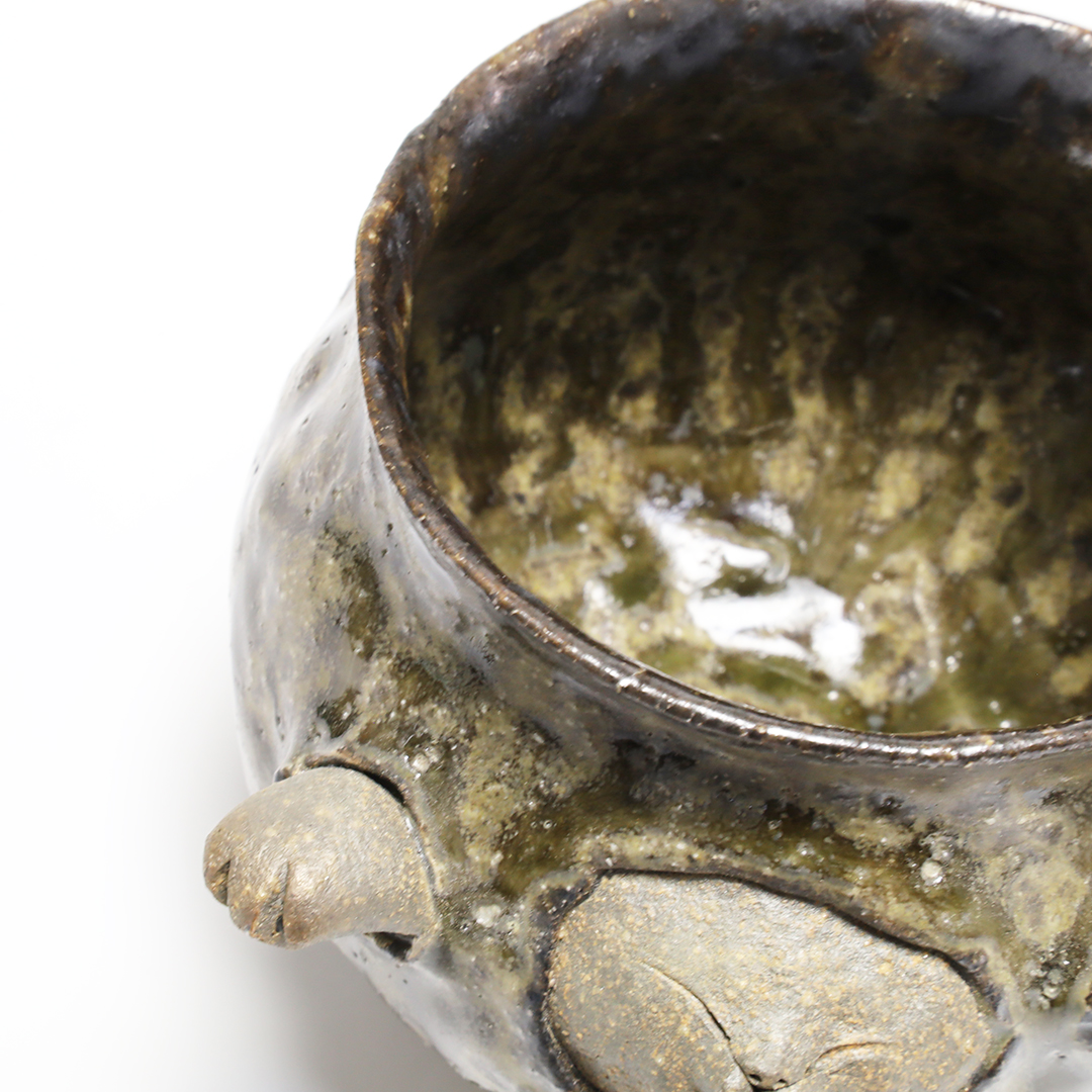 絵柄の上から灰釉をかけているので、絵柄が滲みアンティークな趣の味のある器になっています。