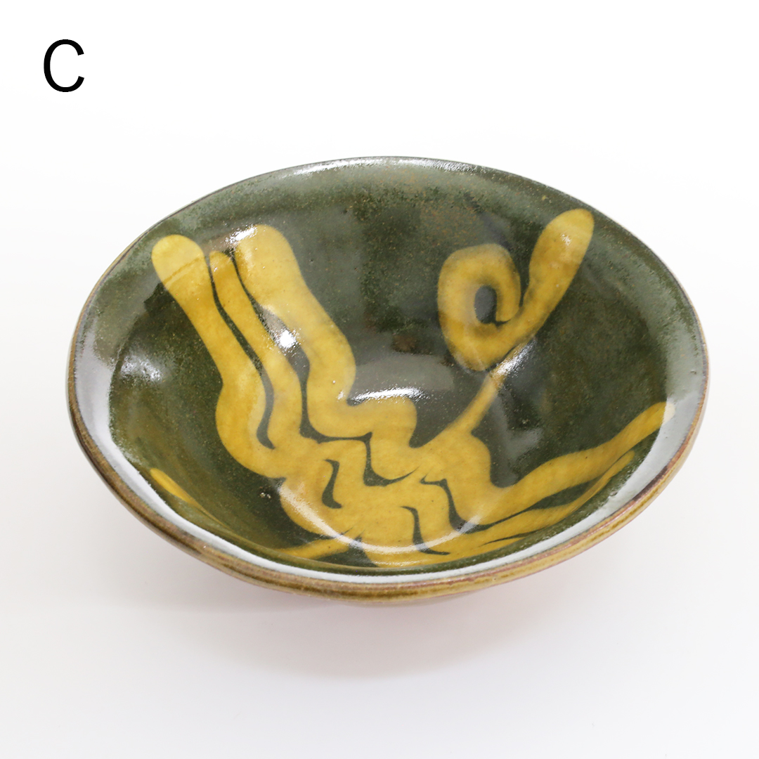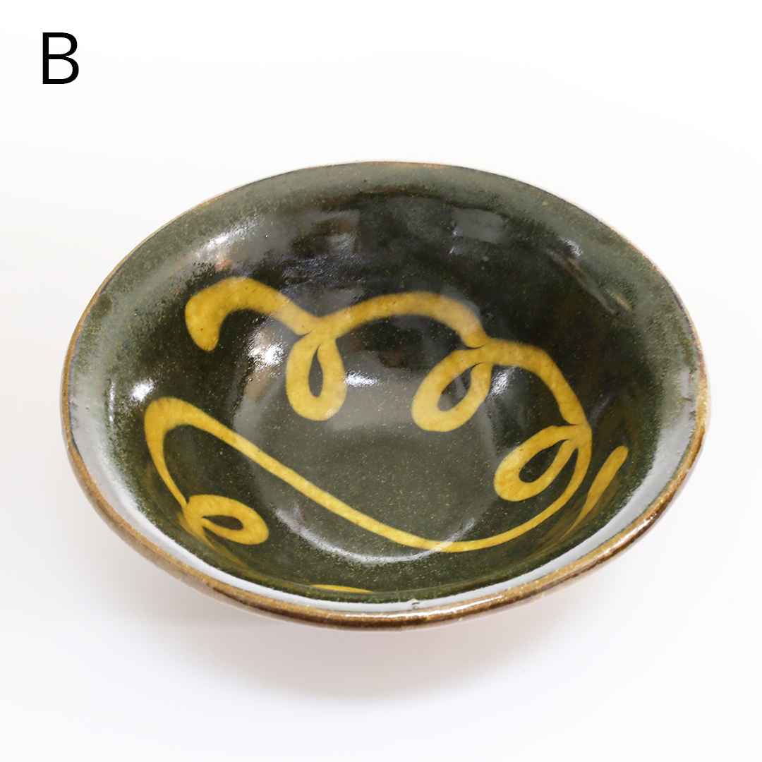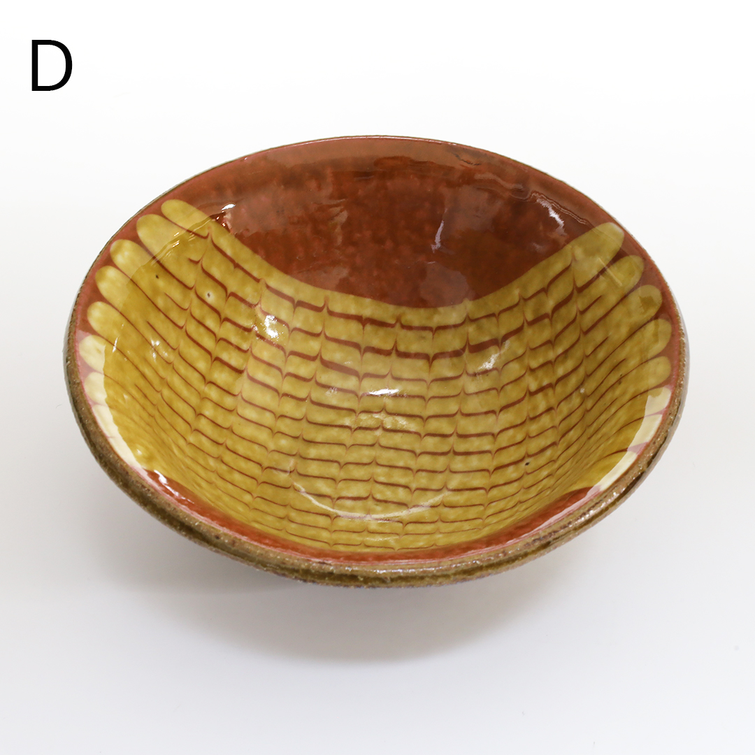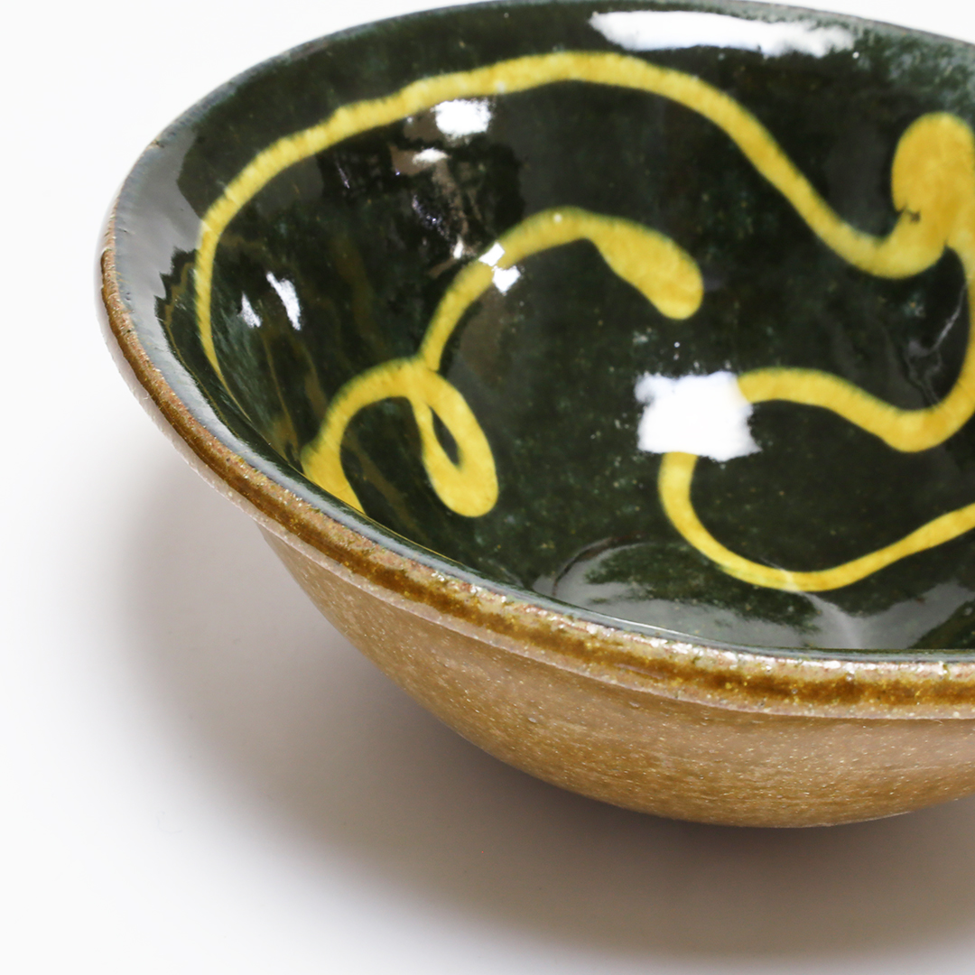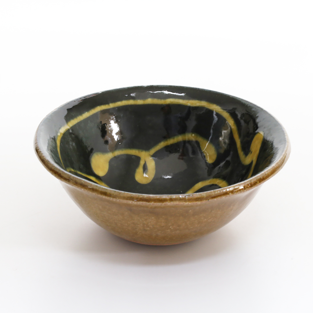 厚みのあるポッテリとした形状に柔らかみがあり、温かみのあるスリップウェアが特徴です。