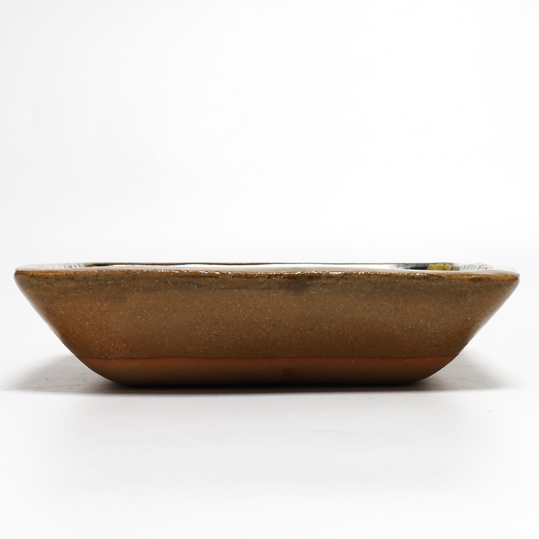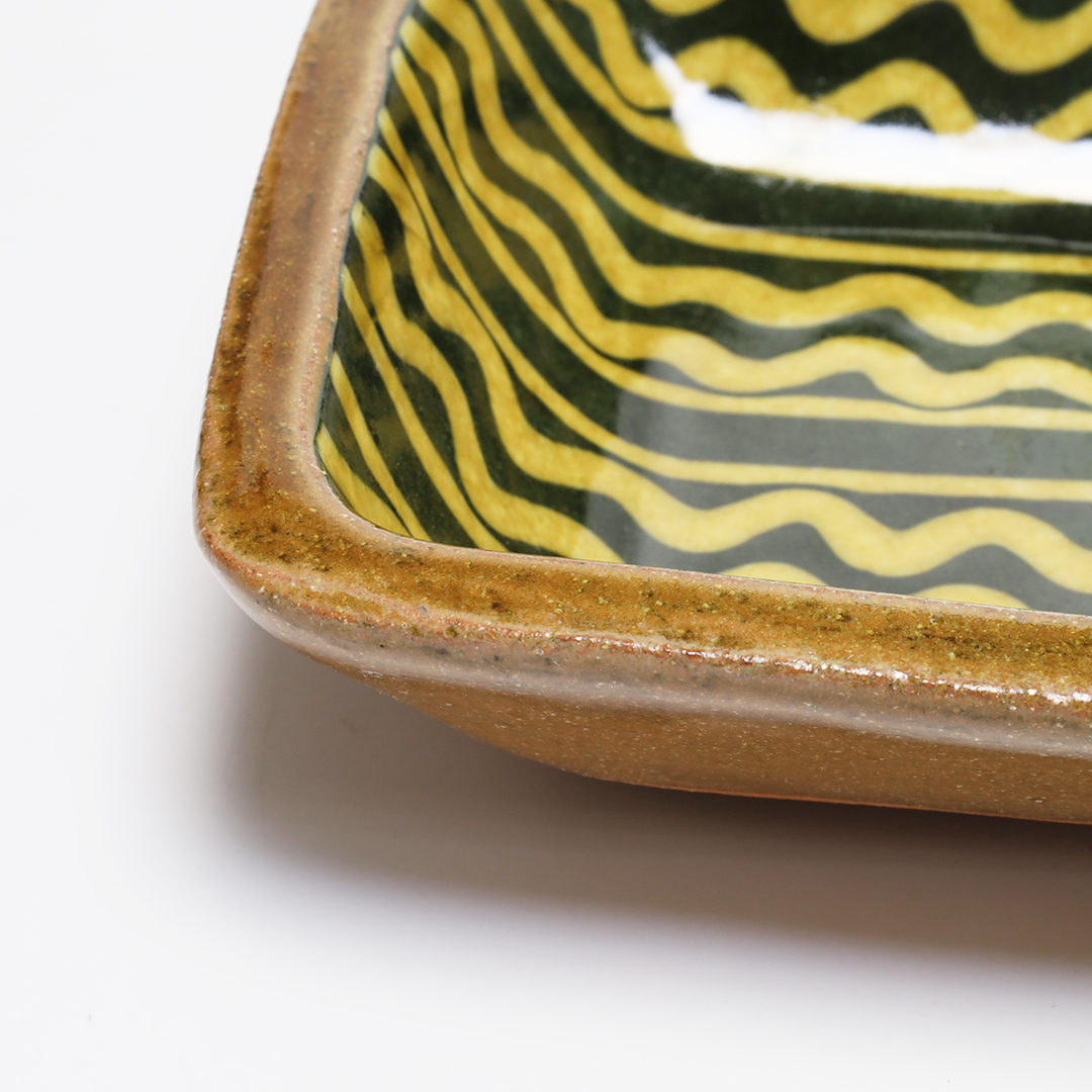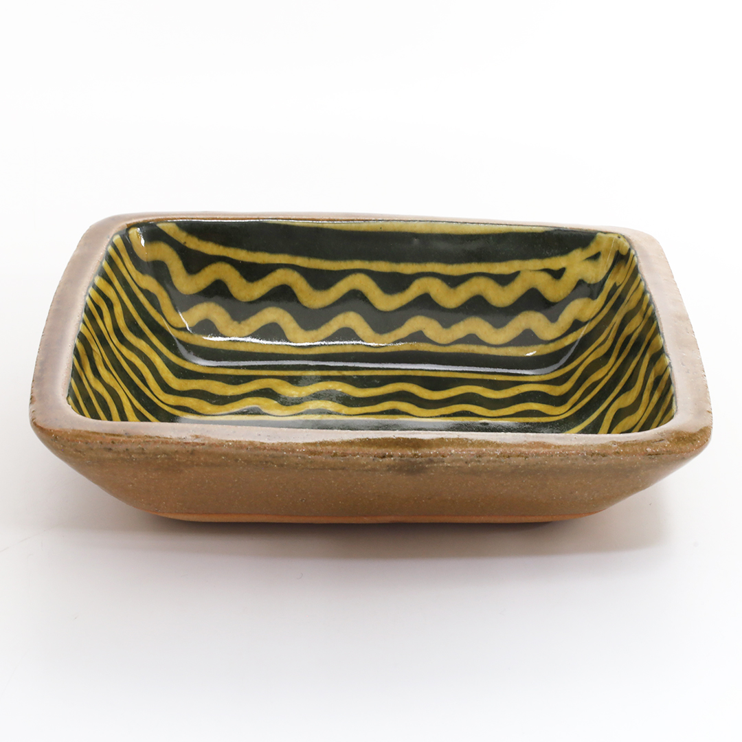 厚みのあるポッテリとした形状に柔らかみがあり、温かみのあるスリップウェアが特徴です。