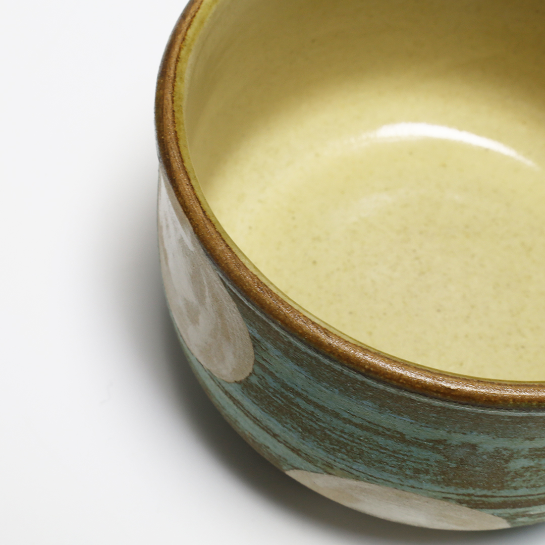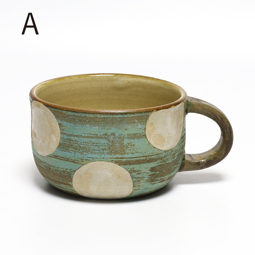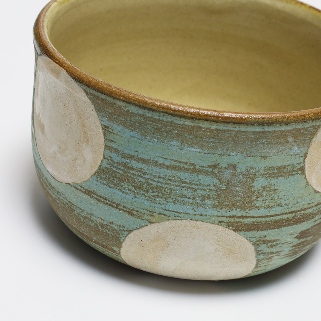 土っぽさを残した質感にカラフルな色合いの絵付けをしています。