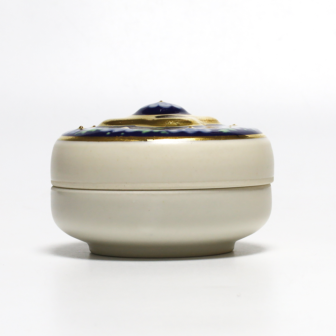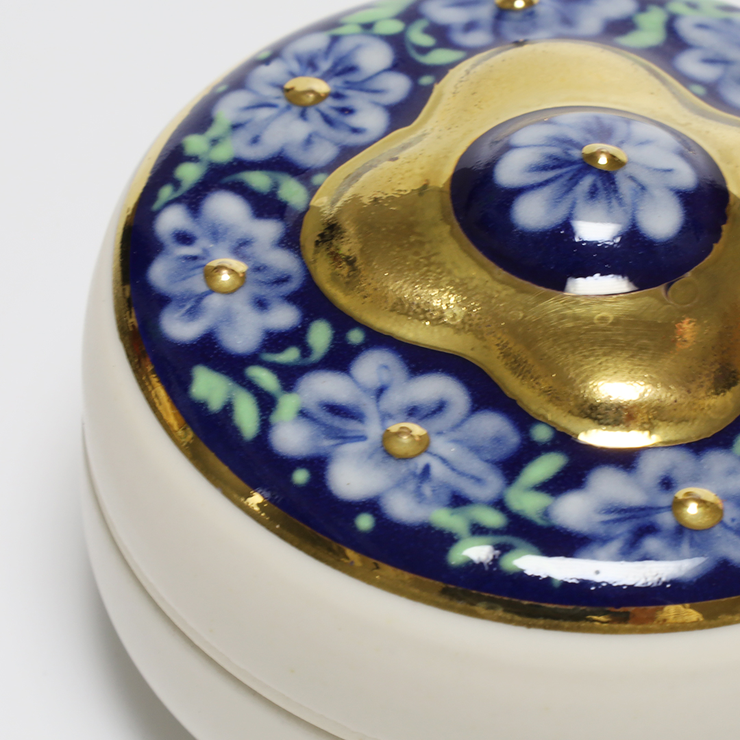 スリップウェアや和紙染めの技法を用いて、華やかな草花を描かれています。