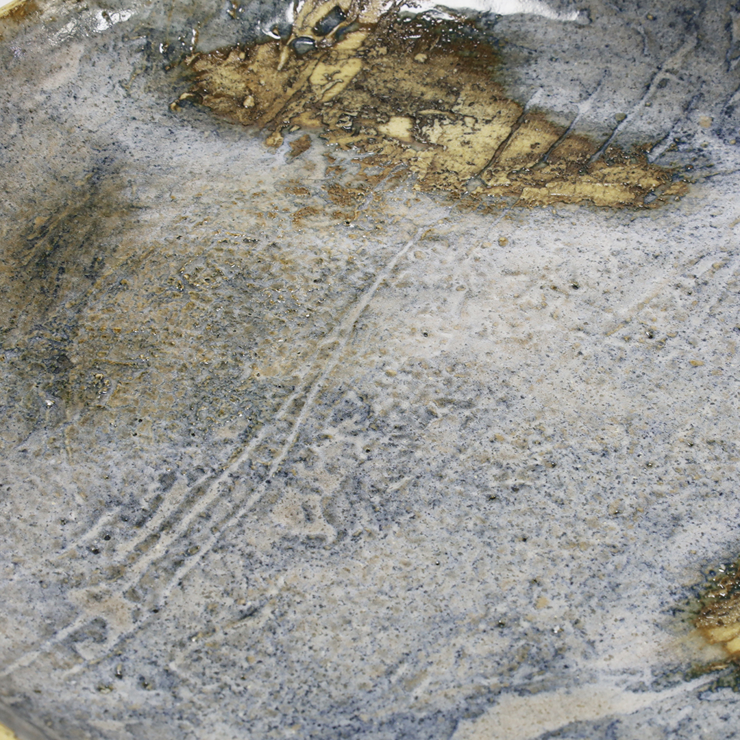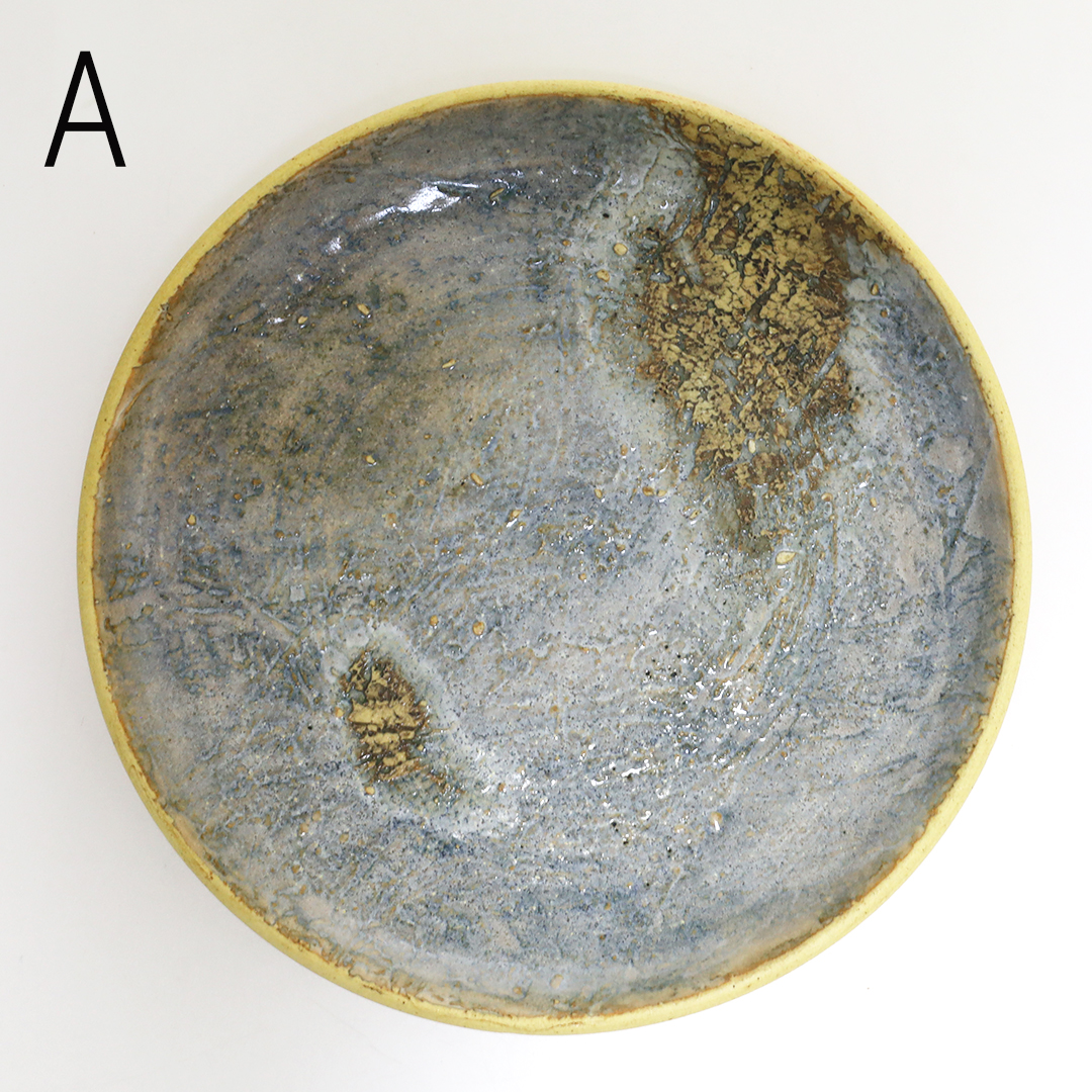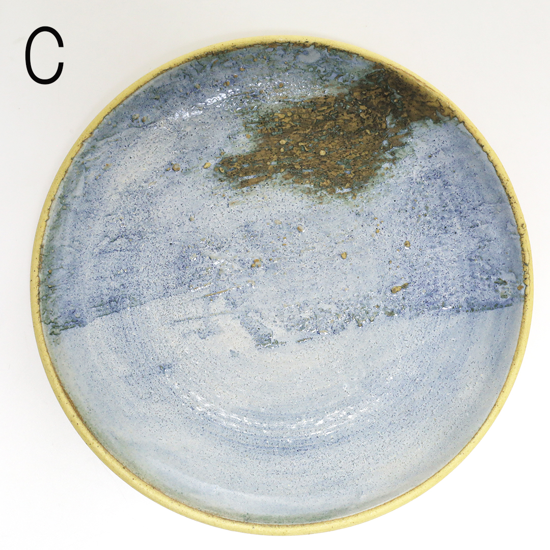 沖縄県読谷村で作陶されている作家です。特徴的なオリジナルのブルーの釉薬を使用しているので、沖縄の自然を感じる、シンプルなのに一度見たら忘れない印象に残る器です。厚みがあるので、しっかりした重みがあります。