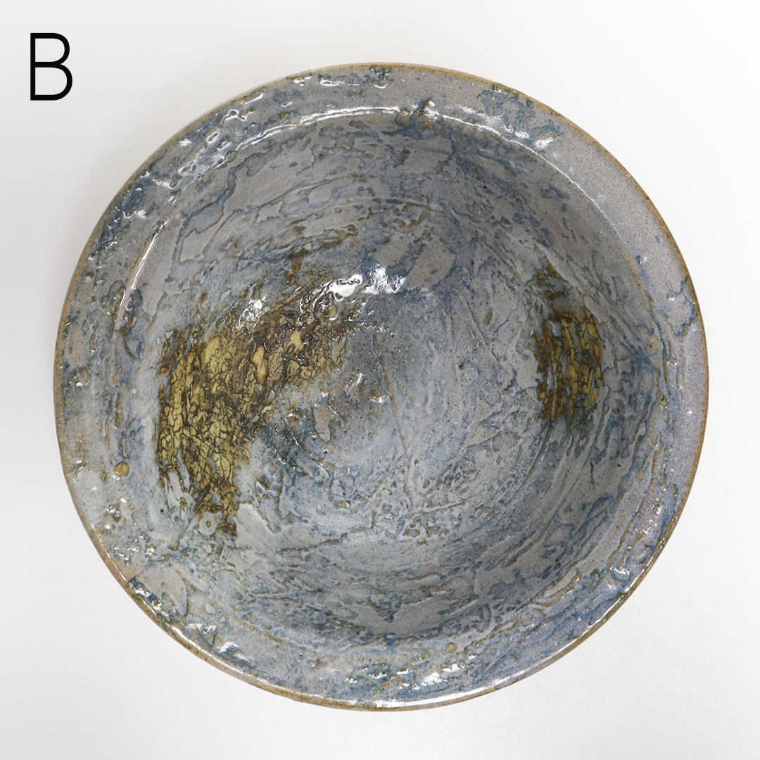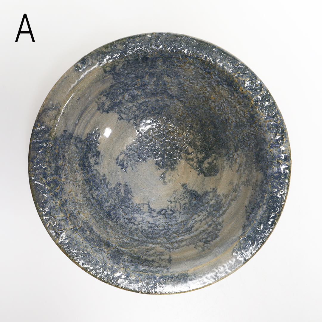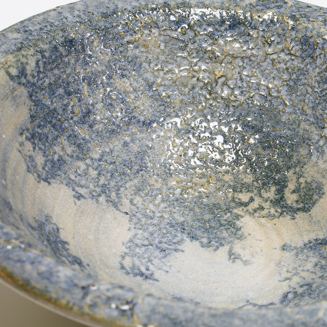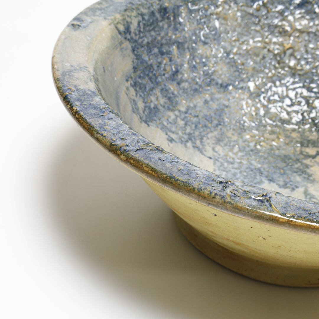 沖縄県読谷村で作陶されている作家です。特徴的なオリジナルのブルーの釉薬を使用しているので、沖縄の自然を感じる、シンプルなのに一度見たら忘れない印象に残る器です。厚みがあるので、しっかりした重みがあります。